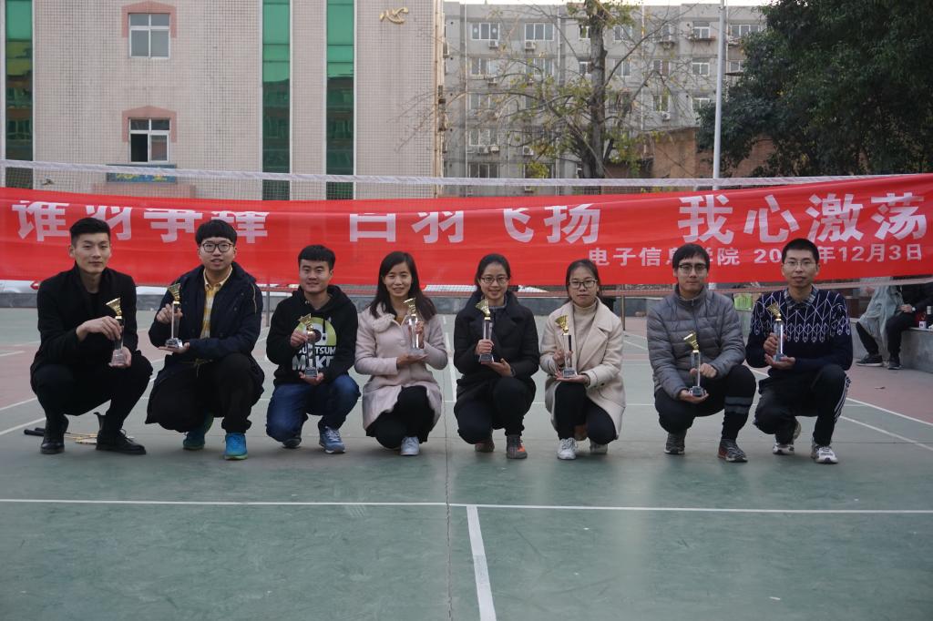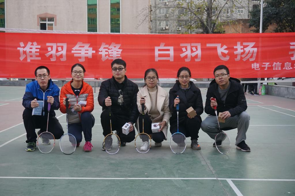 本次比赛参赛选手均为2016、2017级羽毛球爱好者,比赛分为男单、女单、混双赛制,采取循环淘汰制进行比赛。开赛前所有选手精力充沛、信心十足,展现了“无羽伦比,谁羽争锋,白羽飞扬,我心激荡”的良好精神风貌。上午9点,女单、男单同时进行比赛。经过激烈的角逐,何亚瑞、邬红霞、杨檬三位同学凭借各自高超的球技顺利地晋级女单三强,最终何亚瑞获得冠军。男单比赛更加精彩,经过几个回合的淘汰,最终王鹏宇、聂腾腾、范善宇三位同学突出重围杀入男单三强。在男单争夺冠军的决赛中,比赛双方实力相当,比赛进入白热化阶段,比分紧咬,一路厮杀到10:10平,最终王鹏宇技艺更高一筹,获得男单冠军。下午的混双将整场比赛推向高潮,队友之间的默契配合,精湛娴熟的球技,令场下观众阵阵惊呼,加油声不绝于耳,欢笑声不断,点燃了冬日里萧瑟的球场。选手们使出浑身解数,时而分离扣杀,时而轻盈吊球,尽是精彩,真正地赛出了风格,赛出了水平。
