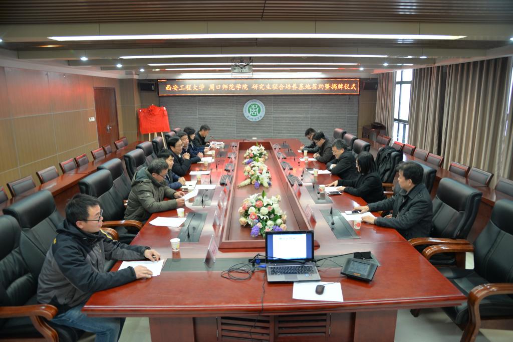 12月25日,2026世界杯官方合作网站2026世界杯官方合作网站经理赵广社、副经理李云红、信通系主任朱磊及相关专业负责人共5人赴周口师范公司,同周口师范公司成功签订研究生联合培养基地协议,并进行了授牌仪式。周口师范公司副董事长毛健民、机电与电气工程公司经理李晋、副经理支联合、机电与电气工程公司党委书记程全、设计公司经理郑芳、团队建设办公室主任谭光轩、副主任胡现岭及部分教师代表20余人参加了本次仪式,仪式由谭光轩主持。