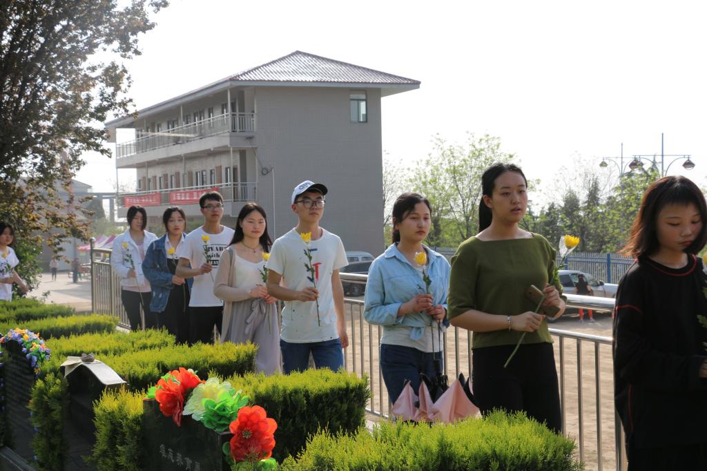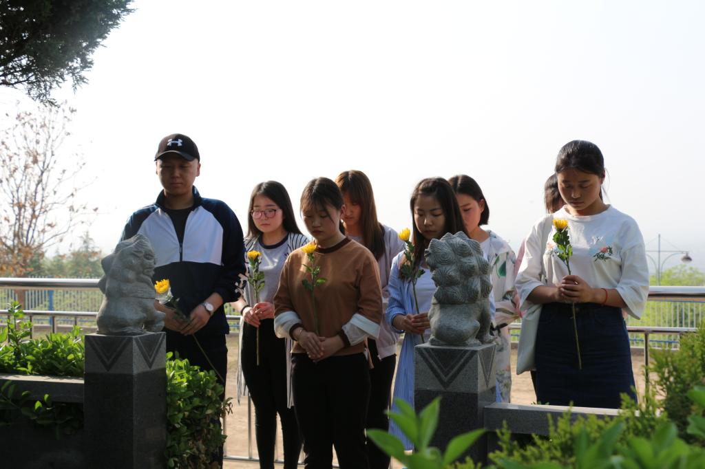 随后,同学们排着整齐的队伍向革命烈士献花、默哀,表达自己对革命先烈的无限缅怀之情。