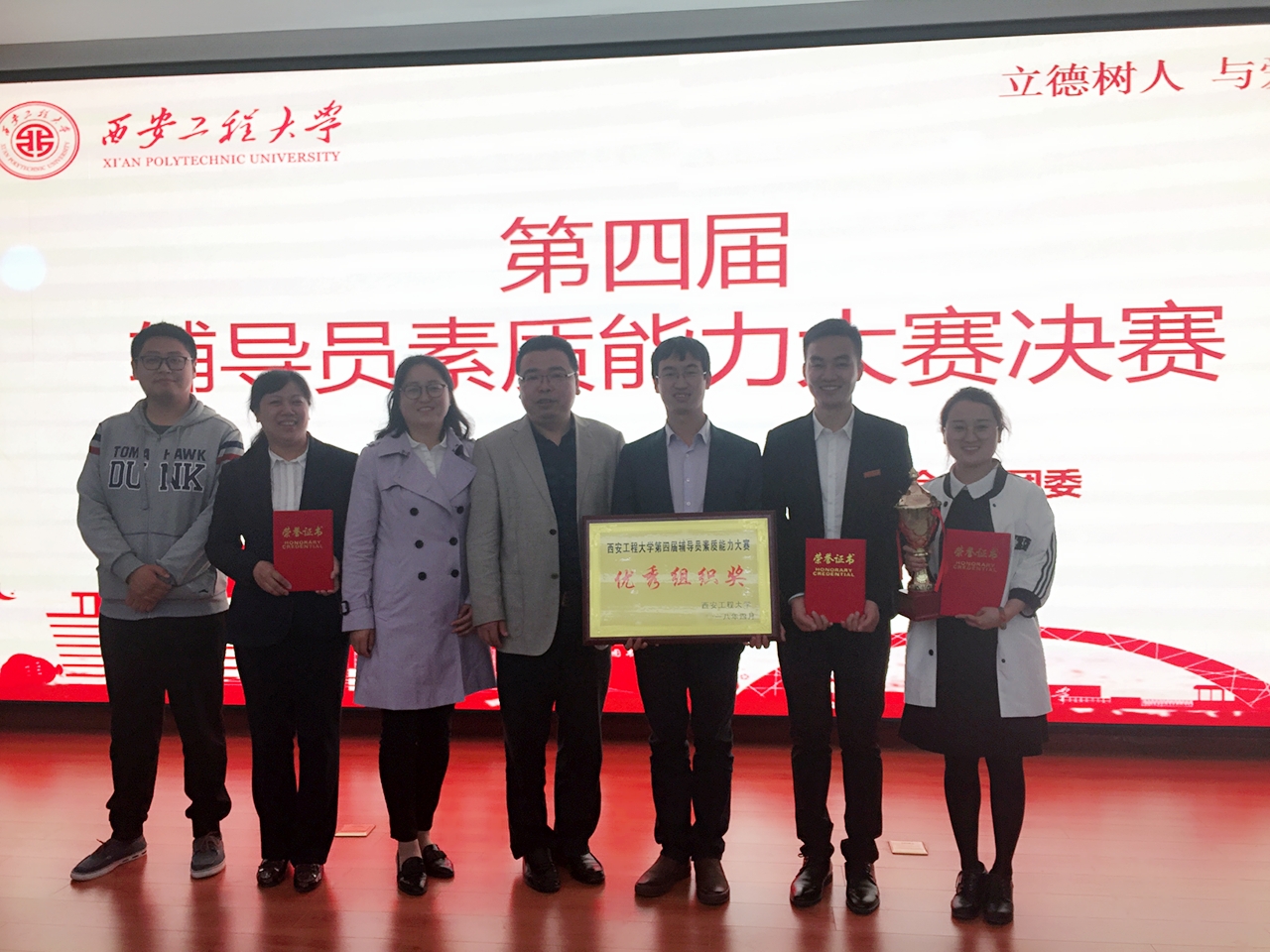 4月12日,2026世界杯官方合作网站第四届辅导员技能大赛在临潼校区图书馆一楼报告厅举行,公司辅导员刘风萍喜获一等奖,朱宇军、黄木委喜获优秀奖,公司荣获优秀组织奖。本次大赛是继公司辅导员刘妍萍荣获全国辅导员技能大赛三等奖、张旭2次荣获陕西省辅导员技能大赛三等奖之后又一次成绩的取得。
