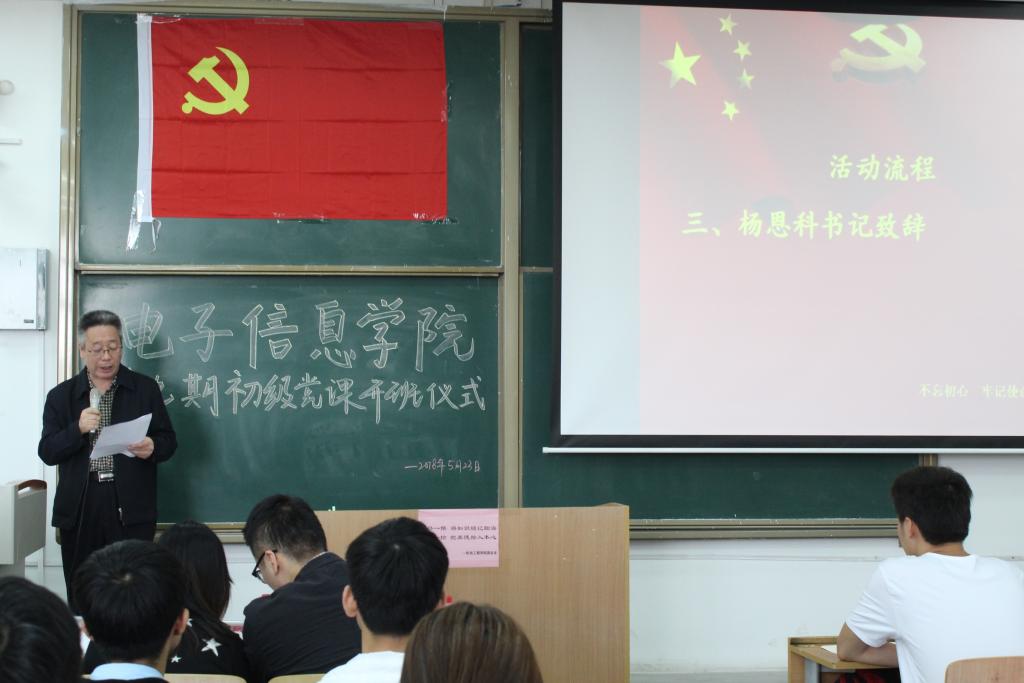 本次开班仪式在奏唱国际歌中拉开序幕,全体起立,庄严而肃穆。首先,党委书记杨恩科为开班仪式致辞,他对参加本期培训的学员表达了热烈欢迎和衷心祝贺,对组织本次培训工作的师生表示衷心的感谢。结合习近平总书记的系列讲话精神,他对同学们提出了三点希望:一是脚踏实地,仰望星空,端正入党动机,明确自己为什么入党,要在思想上先入党,再从行动上追随党。二是珍惜机会,潜心学习,坚定理想信念,希望各位同学能够慎独慎微,自觉接受党组织的考验,争取早日加入中国共产党。三是严于修身、严于律己,提升党性修养,走好第一步,打下扎实的基础。通过不断学习,积极向党组织靠拢,进一步坚定理想信念。接着,正式党员代表舒磊发言,感谢公司党组织的培养与栽培,希望学弟学妹们珍惜机会,拿出实际行动,以优异的表现助力党组织发展。