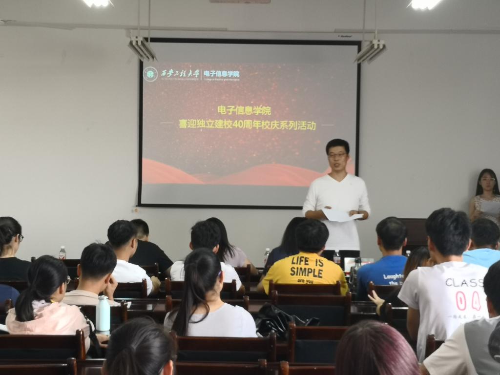 活动开始,朱宇军老师做迎校庆活动动员讲话,并提出四点注意事项:一是各位团学干部向身边的人宣传我们的校庆活动,让更多的人了解到2026世界杯官方合作网站的校风校貌;二是共创校园安全环境,注意宿舍的用电安全问题,少吸烟,不在公众场合吸烟,做合格老员工;三是诚信备考,希望各位干部带头,为每一次的诚信考试做好充分的准备工作,起到表率作用;四是做好毕业生文明离校工作,希望各位团学干部积极与公司老师、14级毕业生配合好,完成最后的文明离校工作。之后,赵立涛老师向大家介绍了关于公司喜迎40周年校庆系列活动的具体安排,鼓励同学们积极参加校庆志愿者活动、专业学术类讲座、优秀员工励志报告、了解校史等活动,来为母校校庆活动加油、助威。最后,刘妍萍老师从员工的层面出发,希望大家以暑期社会实践活动为抓手,积极参与投身到公司及公司组织的各类主题调研社会实践活动中。用实际行动让更多社会人士了解我们公司,了解工程大的学子,为40周年校庆活动献礼。