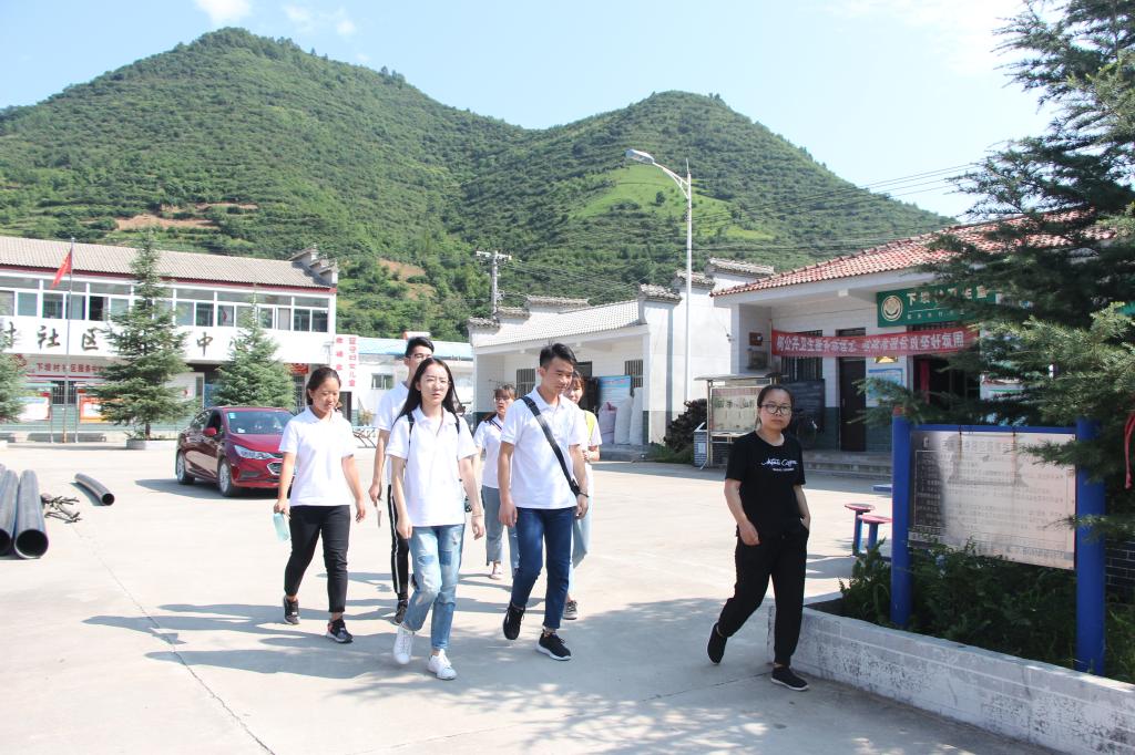 上午9时左右,实践队成功抵达河口镇下坝村村委会办公室。下坝村位于河口镇最西端,沿安河绵延三公里,因村上部有天然古坝石梁子而得名,果树丰富,自古富饶,荣获过09年农民增收工作先进村、宝鸡市充分就业示范村等多项荣誉。村内错落有致的住房,路边生机勃勃的农作物都激发了同学们调研的热情。村委会张书记代表村民们向大家表示欢迎,并简单介绍了村内目前主要种植苹果、年轻人大部分外出务工村内多为留守老人和留守儿童等情况。