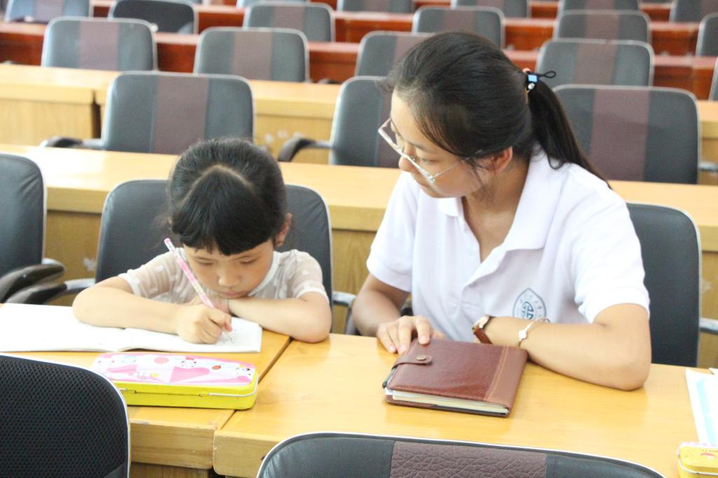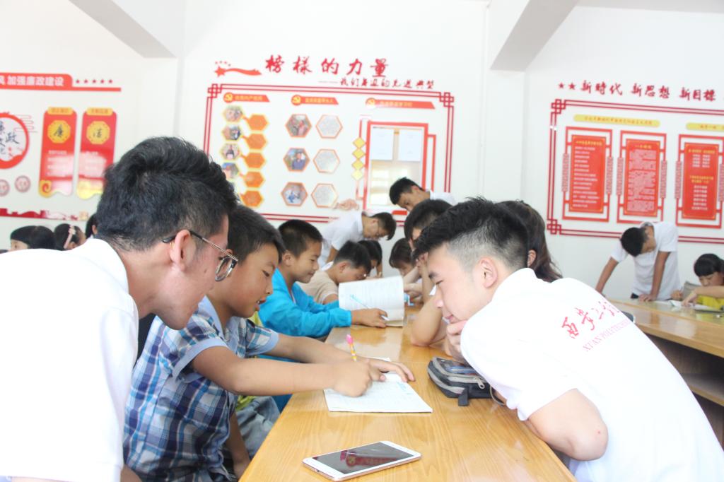 经过中午短暂的修整,下午3时左右大家开始辅导下坝村的小孩子们完成暑期作业,帮助他们解决存在的疑难问题。同学们发现小朋友们的作业完成的非常不错,而且成绩都相当棒,决定跟孩子们一起做游戏放松一下。大家通过击鼓传花游戏,让每一位小朋友都有机会能够介绍自己向大家表演才艺。每位接到“花”的小朋友都很积极地为大家背诵古诗或者演唱歌曲,氛围十分欢快。实践队员也纷纷拿出自己的看家本领,或唱歌,或跳舞将欢乐带给大家。在这欢声笑语中,今天的调研活动也落下了帷幕。