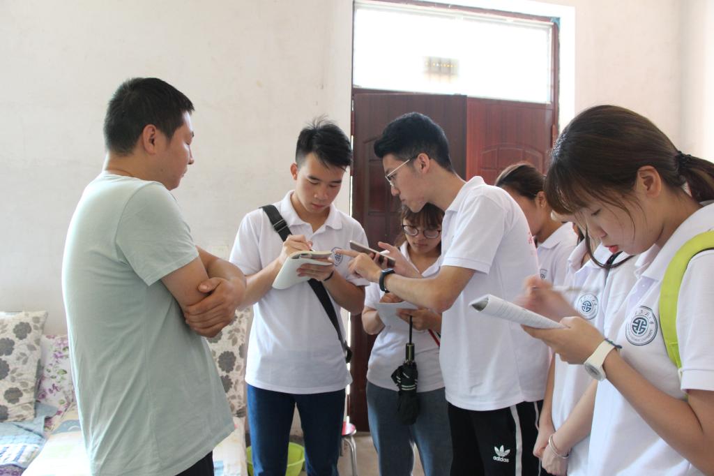 为了更有效地调研,实践队队员们兵分两路自村委会办公室分别沿路向上、下两个方向进发。调研过程中,许多热心村民邀请同学们入家就坐,对于实践队员的问题都会用心回答。