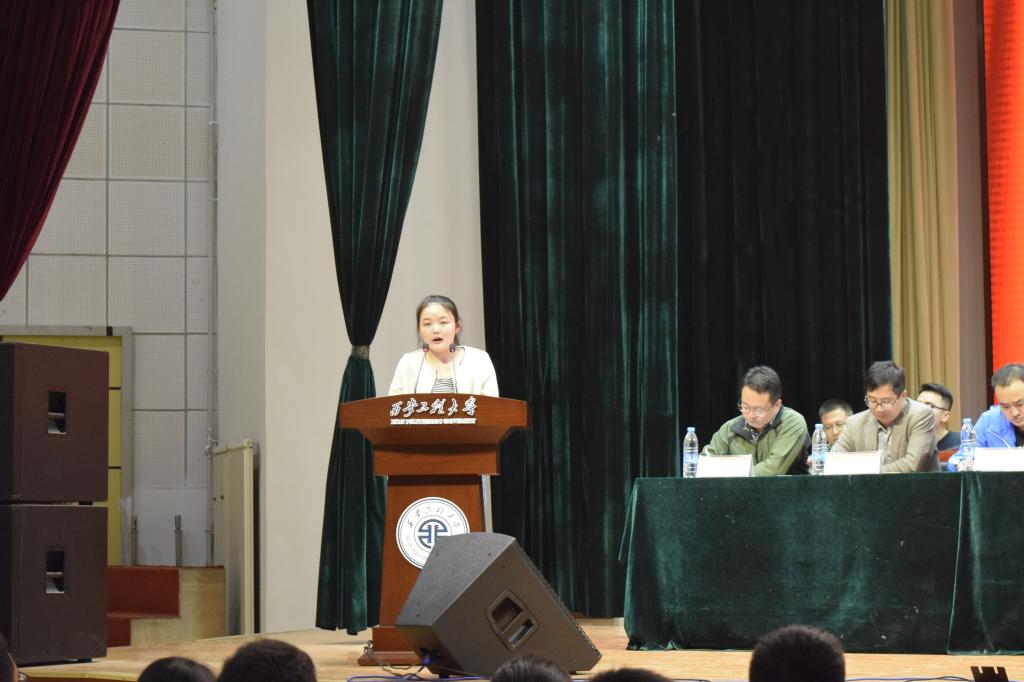 接下来是教师代表刘秀平发言,作为一名教师,刘秀平希望18级新生们能够奋发进取,给自己的老员工活定下一个目标,不光是学习,还要提升自己各方面的知识,定好位、走好路、成好才。