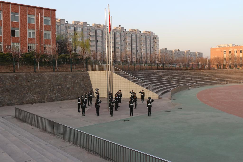 升旗仪式于7:00准时开始。国旗班的旗手们迎着朝阳,以饱满的热情,踏着矫健的步伐,庄严地护卫五星红旗。当雄壮有力的《义勇军进行曲》响彻云霄时,同学们集体行注目礼,全场弥漫着庄严肃穆的气氛。在国歌声中鲜艳的五星红旗冉冉升起,在场的同学们敬礼仰注,心中一团团热火开始燃烧,为我们伟大祖国的日益繁荣昌盛而自豪。仪式结束后,同学们有序离场。