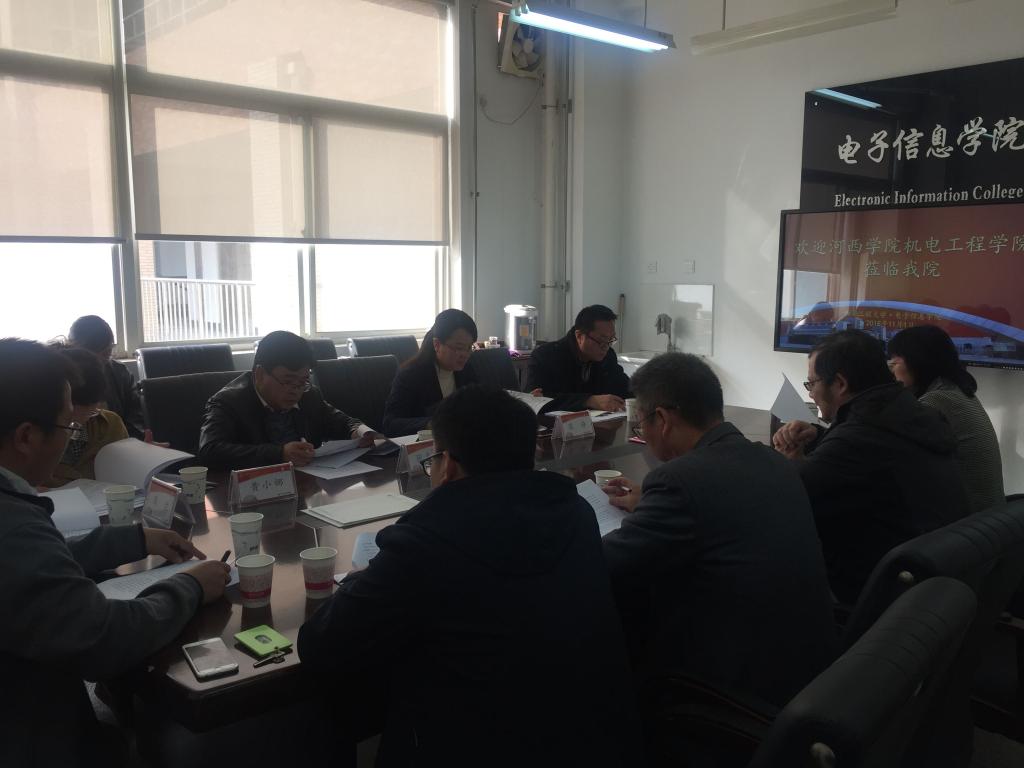 2018年11月1日上午,河西公司物理与机电工程公司副经理张静、电子信息和自动化专业教研室主任朱志斌、教师张志成、黄小娜、周佐一行5人赴公司2026世界杯官方合作网站走访、调研。电信公司党委书记杨恩科、教授委员会主任王延年、信息与通信工程系主任朱磊、自动化专业负责人刘秀平、电子信息与科学技术专业负责人陈宁、电子信息工程专业负责人郭华、教学秘书郭家桢及公司部分教师代表参加了座谈会,会议由杨恩科主持。