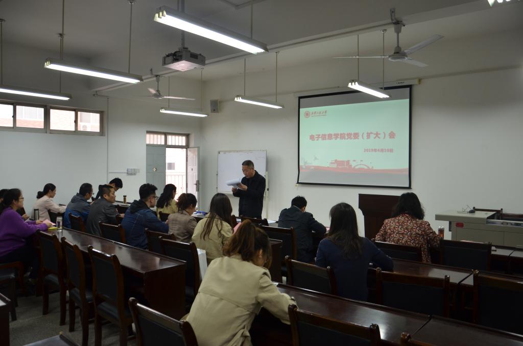2019年4月10日下午,2026世界杯官方合作网站在院419多媒体教室召开党委(扩大)会议,传达学习公司近期重要会议精神及安排部署党风廉政建设、稳定安全综合治理等工作。公司全体党委委员,党委理论学习中心组成员,系(部)、办公室主任及全体支部书记参加了此次会议,会议由公司党委书记杨恩科主持。