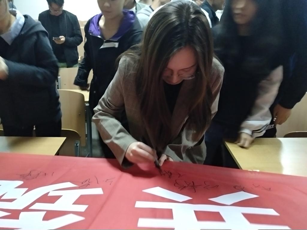 最后,参会同学纷纷在“维护国家安全,共筑钢铁城墙”横幅上签名,以表决心:在未来的学习生活中,高度重视、积极参加、用实际行动自觉维护祖国安全,以优异成绩喜迎中华人民共和国成立70周年。(撰稿人:朱宇军 审核人:杨恩科)