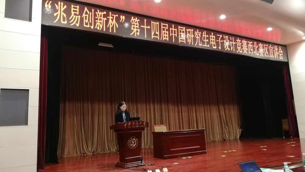4月16日下午,“兆易创新杯”第十四届中国研究生电子设计竞赛西北赛区宣讲会在西安交通大学教学主楼多功能厅召开。中国电子学会科普与应用推广中心主任王娟、研究生电子设计竞赛秘书处秘书刘霆轩、相关企业代表以及来自西北地区20所高校的师生代表参加了本次宣讲会,宣讲会由2019年西北赛区承办方西安邮电大学研究生院副经理王沛主持。2026世界杯官方合作网站团总支书记刘妍萍、研究生秘书行露及公司30余名研究生参加了本次宣讲会。