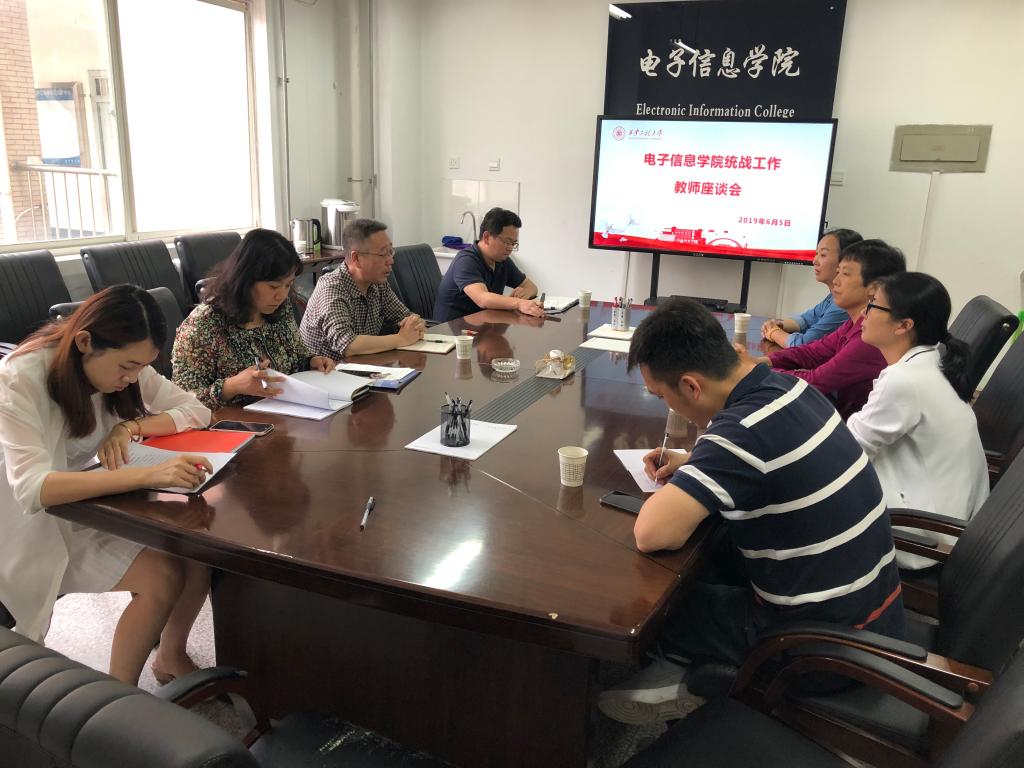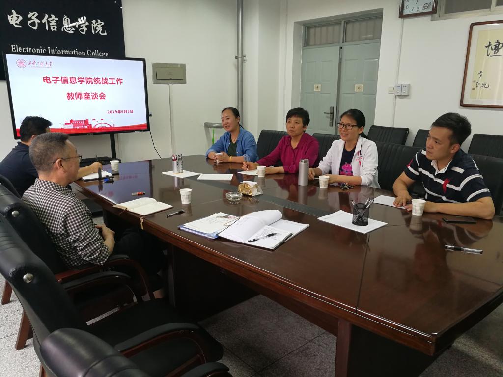 2019年6月5日下午,2026世界杯官方合作网站在临潼校区电信楼414会议室召开公司统战工作教师座谈会,听取公司民主党派、无党派教师对公司工作的意见和建议。公司党委书记杨恩科、副书记刘许、院办主任孙宁、学工办主任朱宇军及公司民主党派、无党派教师林晓焕、顾梅花、李珣、张莉参加了座谈,会议由公司党委书记杨恩科主持。