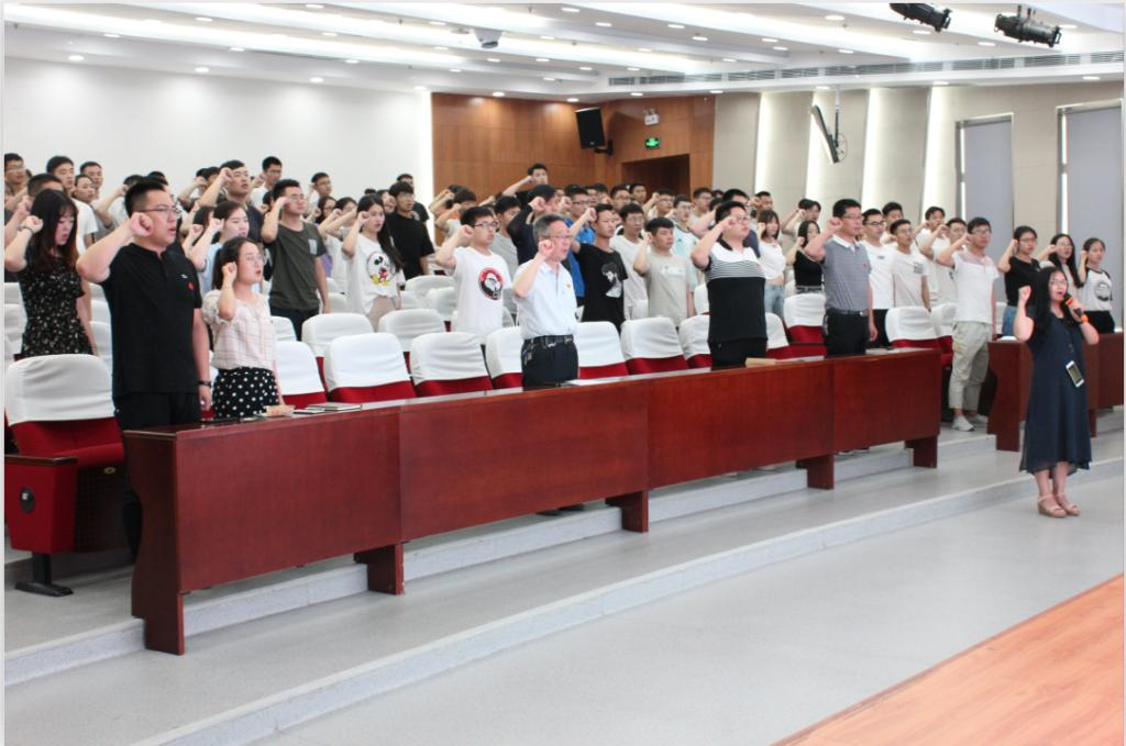 大会接下来进行集体宣誓,重温入党誓词仪式。全体毕业生党员首先观看了由入党誓词拍摄的视频《我宣誓》,视频中激情澎湃、振奋昂扬的画面及习近平总书记领誓入党誓词的原声,一次次鞭策、提醒着大家,提醒着在场的党员们要自觉履行党员的责任与义务、要主动肩负起新时代赋予我们每一个人的责任与使命!然后在副经理李云红的带领下,全体毕业生党员面向党旗,举起右拳,重温入党誓词,表达自己为共产主义事业奋斗终身的理想和信念。