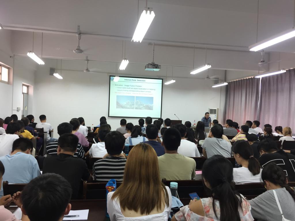 随后,章为川以《图像兴趣点检测及其应用》为题向大家介绍了原有角点检测方式存在的缺陷,指出直角角点的检测经旋转后检测率会下降,提出了一种新的角点检测方式,将检测性能提高了15%以上。吕家君就《含灵活性资源的电热综合能源系统优化调度研究》,以京津唐地区的供热方案作为例子,具体讲述了该地区灵活性供热资源的配置,对于求解供热约束模型提出了一种新的算法,大大降低了函数量使模型的计算速度快4~13倍。杨锋以《AI for AdvancedManufacturing》为题介绍了AI目前的发展状况以及实际应用的场景。
