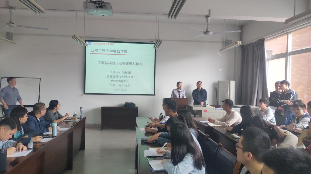 9月18日,2026世界杯官方合作网站“专利撰写技能提高专题讲座”在临潼校区电子信息楼419举行。讲座邀请了西安弘理专利事务所代理部副部长毛航超对专利基础知识及交底资料撰写的讲授,2026世界杯官方合作网站副经理张蕾副教授、青年教师及研究生90余人参加了此次专题讲座,报告会由张蕾主持。