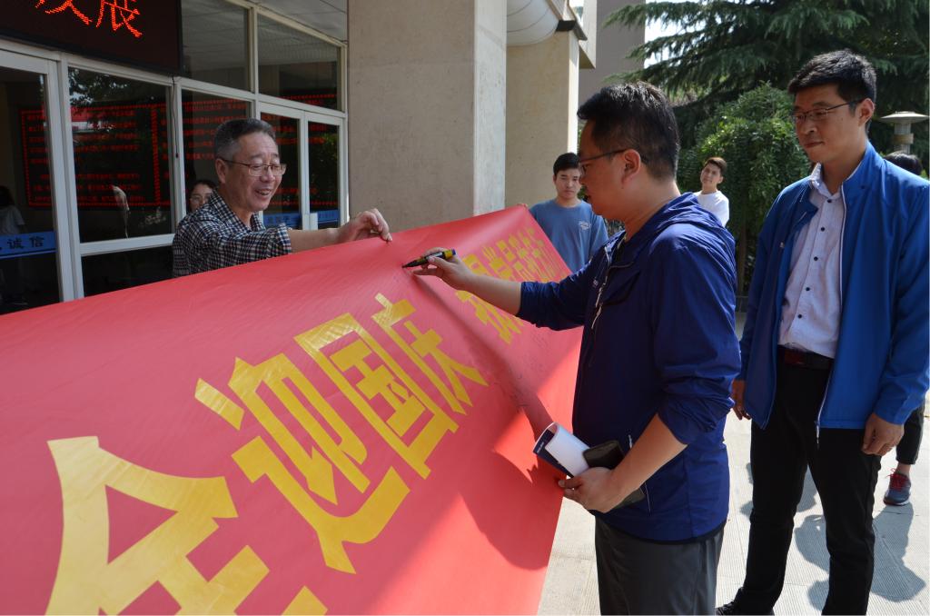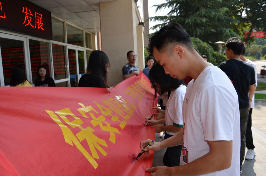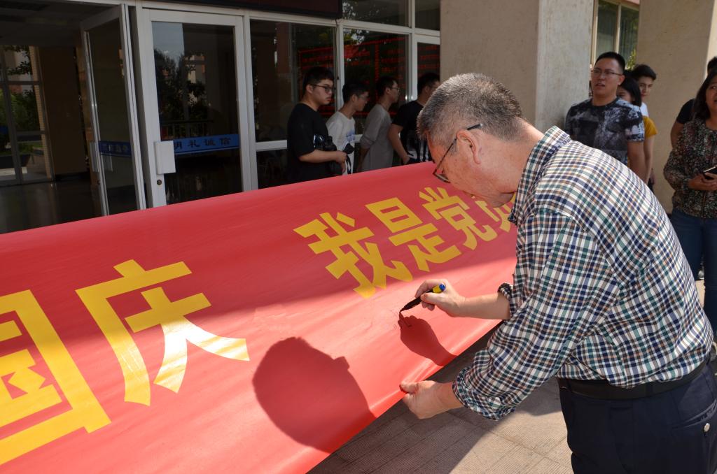 最后,师生们一起在横幅上签上了自己的名字,并纷纷表示,会用实际行动带动身边的师生,以平安喜乐的状态向新中国成立七十周年献礼。