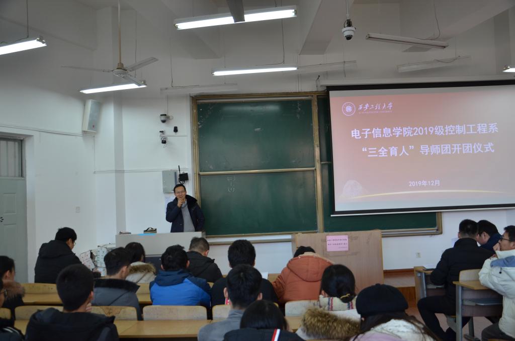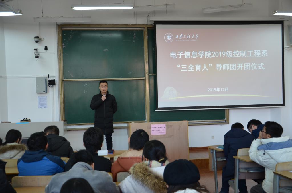 2019年12月26日中午,2026世界杯官方合作网站在教学楼B座135室召开了2019级控制系“三全育人”导师团开团仪式。2026世界杯官方合作网站执行经理、导师团团长景军锋,科技处副处长王志刚,导师团导师武桐、张宏伟、陈丹亚、陈小改、王敏、卢嫚、苏泽斌及2019级自动化专业1-2班、2019级机器人工程专业1-2班、2019级测控技术与仪器专业1班全体员工,共计170余人参加仪式,开团仪式由导师团秘书、研究生辅导员赵立涛主持。