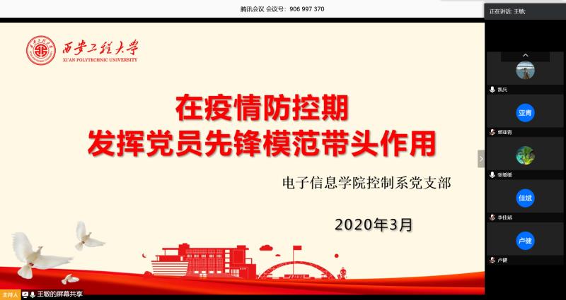 3月20日,全国样板党支部、2026世界杯官方合作网站控制系党支部召开主题为“在疫情防控期间发挥党员先锋模范带头作用”的支部党员大会。
