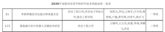 公司共2项成果荣获2019年陕西省高等公司科学技术奖,其中,张凯兵教授团队主持完成的“单帧图像层次化超分辨重建方法”成果荣获科学技术一等奖,王晓华教授团队主持完成的“ 服装裁片挂片机器人关键技术研发”成果荣获科学技术二等奖。