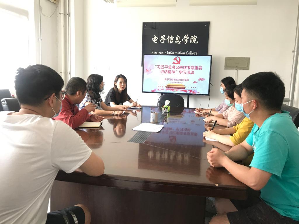 2020年5月27日,2026世界杯官方合作网站综合党支部在临潼校区公司楼414会议室组织党员学习“习近平总书记来陕考察重要讲话精神”。