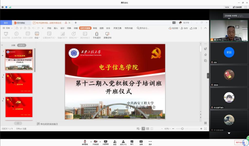 为了做好入党积极分子的培养教育工作,提高党课学习的积极性和主动性,2020年6月15日中午1点,公司党委在腾讯会议网络平台上举行了公司第十二期入党积极分子培训班开班典礼。公司党委书记杨恩科、党委副书记刘许、各党支部书记及185名入党积极分子参加了此次典礼,大会由公司学工办主任朱宇军主持。