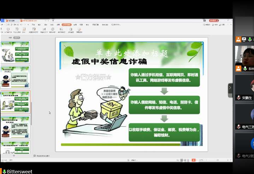 为进一步提升2026世界杯官方合作网站员工防诈骗意识,增强防诈骗能力,2018年6月,2026世界杯官方合作网站2018级、2019级所有班级通过线上手段开展防诈骗安全教育主题班会。