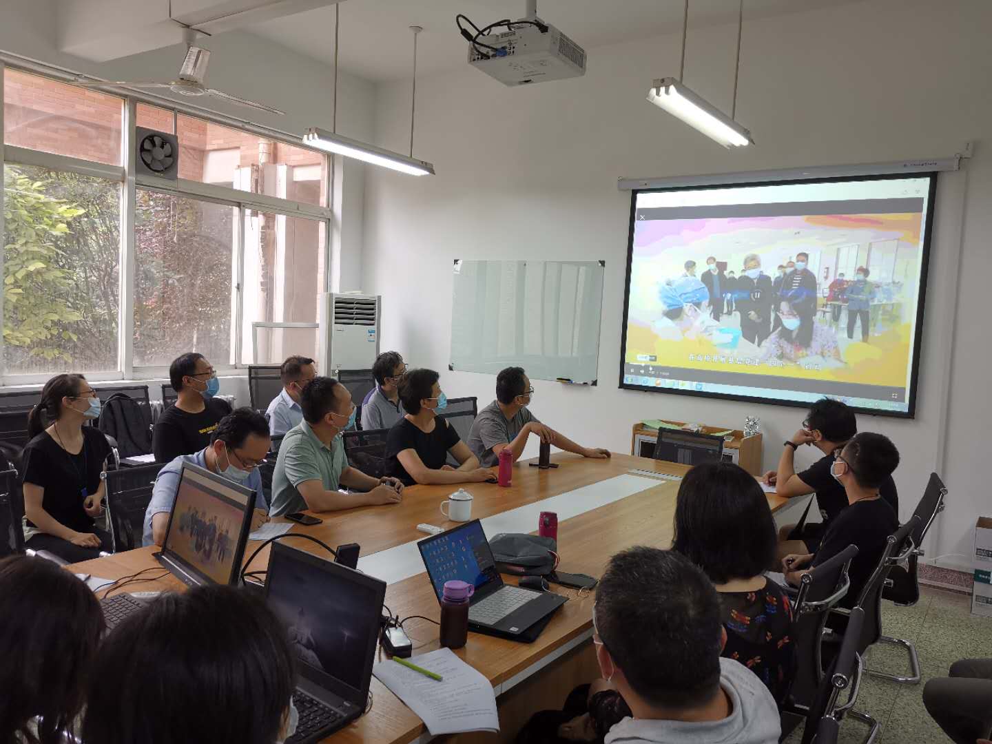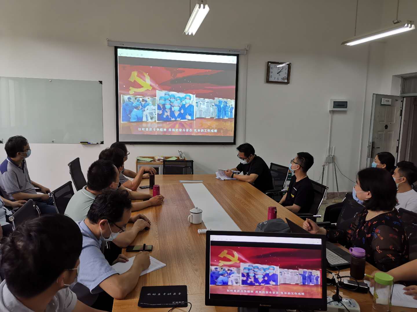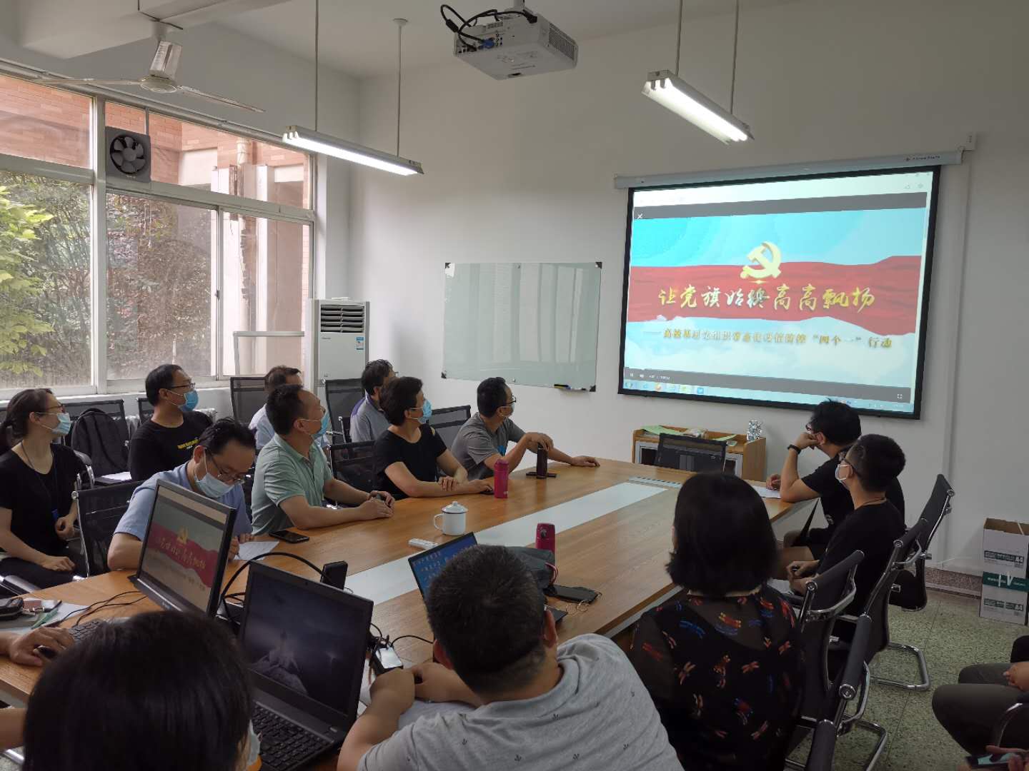在中国共产党99岁生日当天,2020年7月1日下午2点,电气系党支部全体教工在临潼电信楼102教研室同上云端微党课“党旗飘扬,筑牢红色防火墙”—— “七一”专题高公司党组织战“疫”示范微党课。