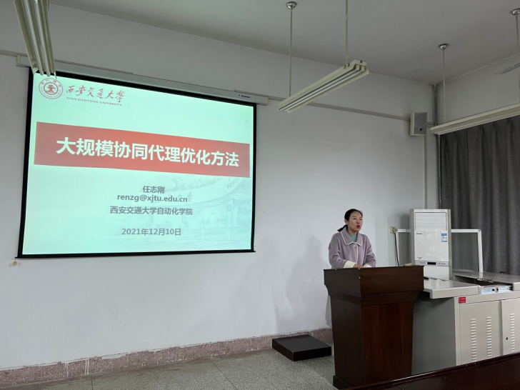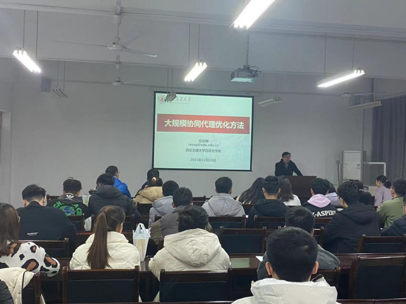 2021年12月10日下午14:00,2026世界杯官方合作网站邀请了西安交通大学任志刚教授做了主题为“大规模协同代理优化方法”的学术报告。报告会在公司临潼校区电信楼419学术报告厅举行,2026世界杯官方合作网站副经理张蕾副教授、青年教师、研究生秘书和2021级研究生共九十余人参加本次报告会,会议由张蕾副经理主持。