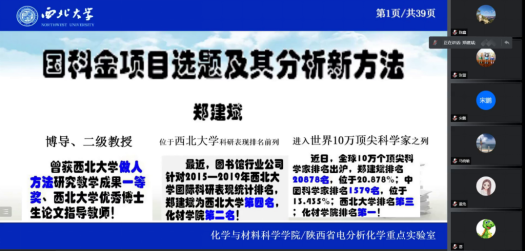 会议分三个部分。首先,郑教授为参会教师作了题为“国科金项目选题及其分析新方法”的专题报告,报告从改变申报基金观念入手,重点围绕如何设计研究内容、突出创新特色和构建科学问题等重点方面进行了讲解,并结合具体案例,对国家自然科学基金项目申请书中创新与特色的层次化写作技巧进行了重点介绍。