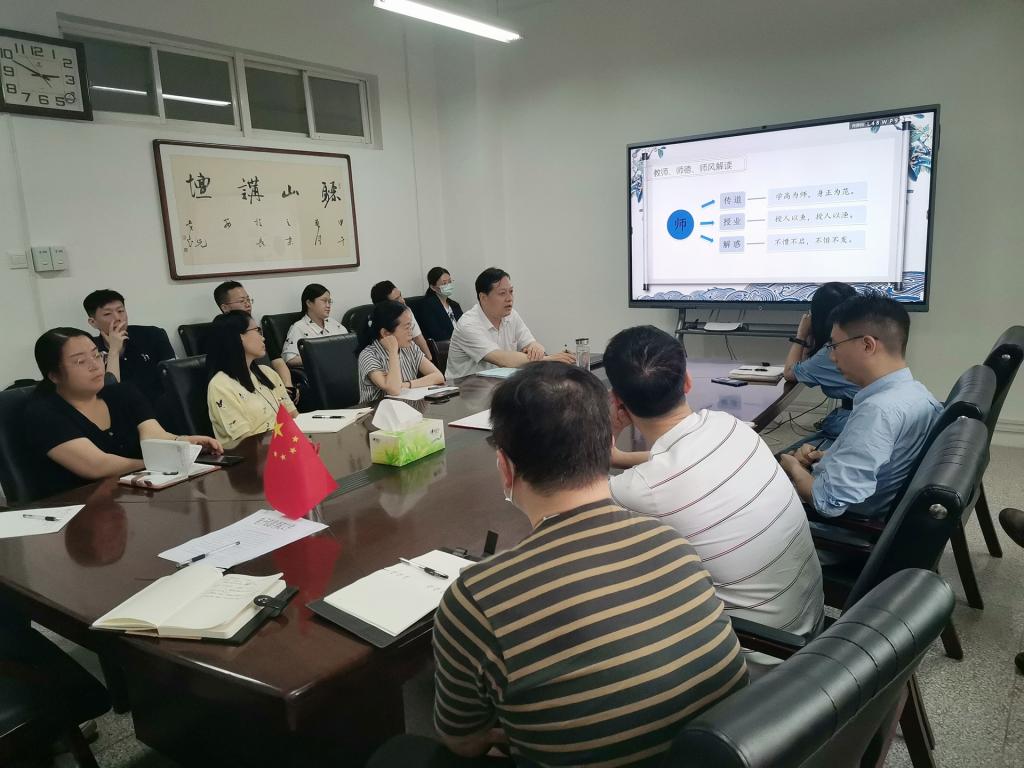 为加强师德师风建设,引导广大教师不忘立德树人初心,牢记为党育人、为国育才使命,5月25日,在电信楼414会议室,公司党委书记杨友谊为公司青年教师作了题为《抓师德师风建设,做四有好老师》的精彩报告,公司青年教师20余人共同聆听了报告。在正式讲授之前,杨友谊带领老师们学习了《十九大以来陕西省高校违纪违法典型案例警示录》,重点解读了涉及教师行为失德、科研经费使用不当等案例,要求教师要以案为鉴、以案为戒,始终恪守职业行为准则,始终坚持自我革命,始终保持清醒头脑,绝对不逾越和触犯“师德底线”,必须遵循“师德基准。
