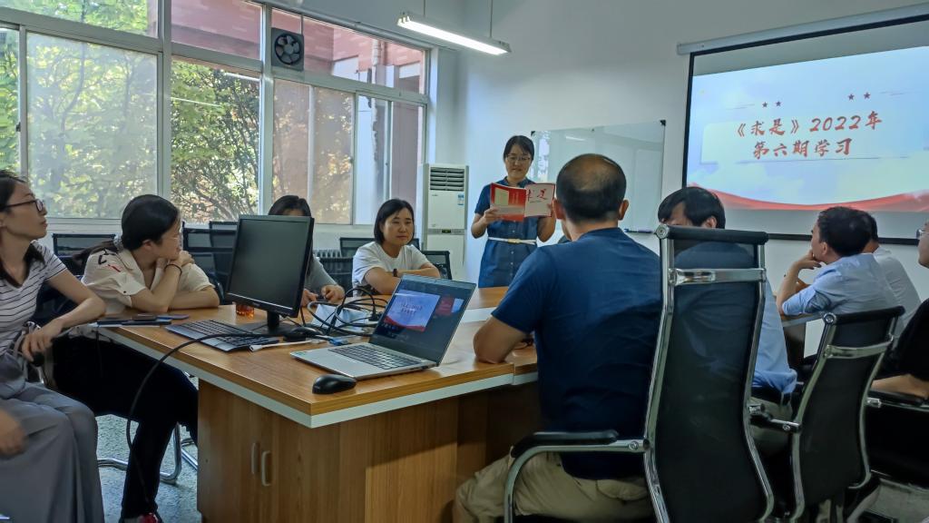 最后,支部书记组织全体党员教师开展了关于党的十九届六中全会《决议》与2022年第六期《求是》杂志的学习。