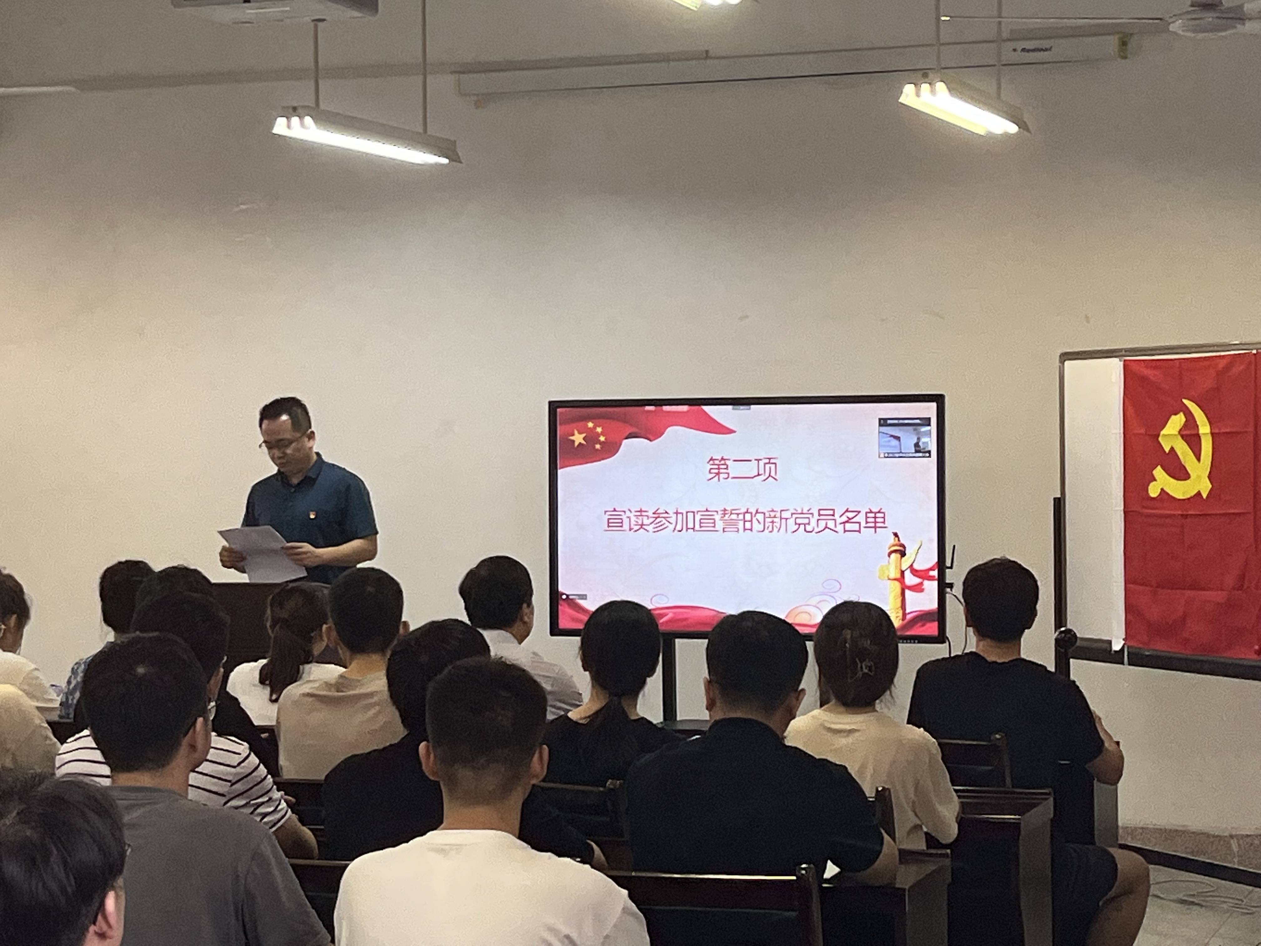 宣誓仪式在雄壮的国歌声中拉开序幕。首先由公司党委副书记刘许宣读了参加宣誓的中共预备党员名单,并对光荣加入中国共产党的党员表示祝贺。