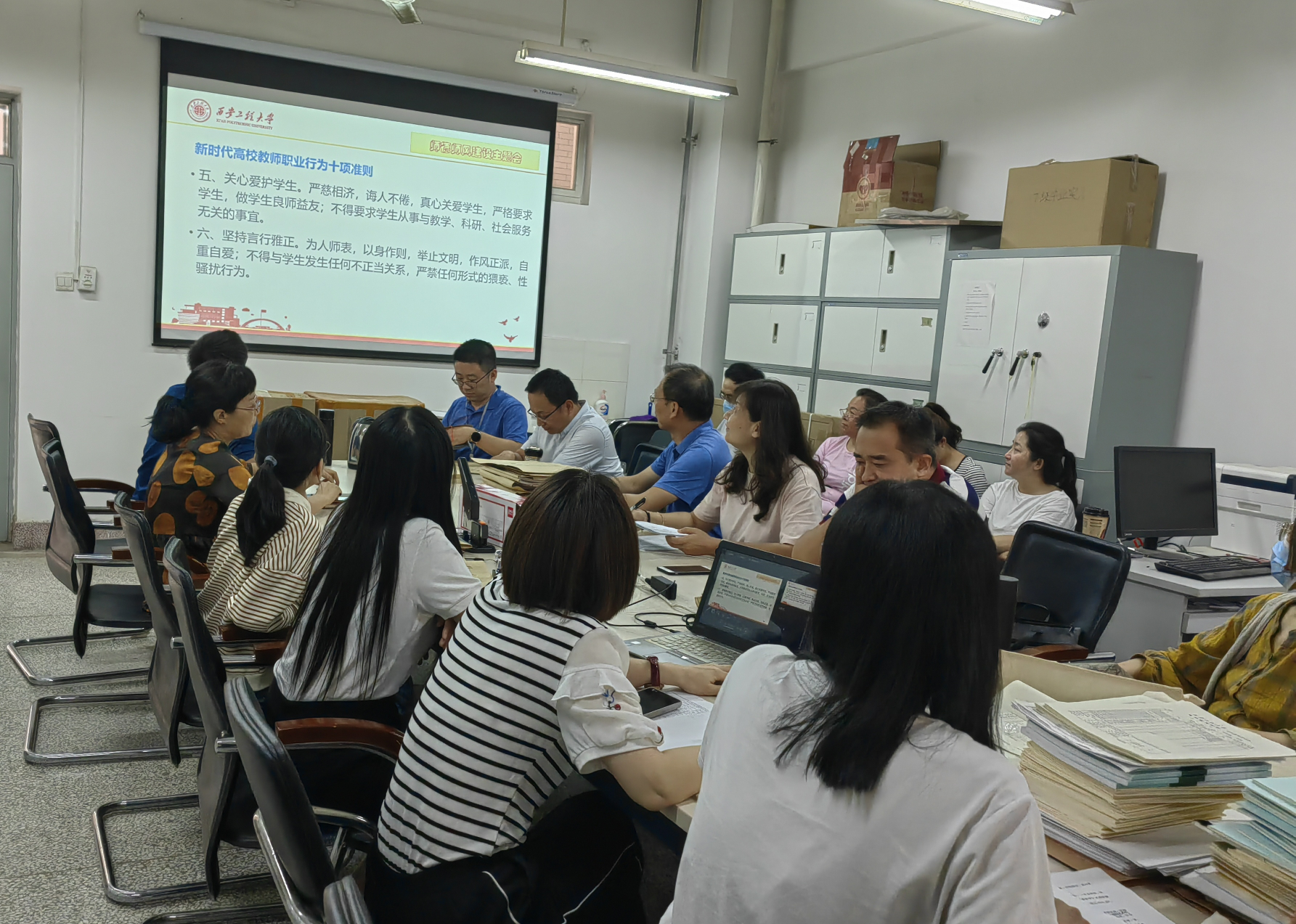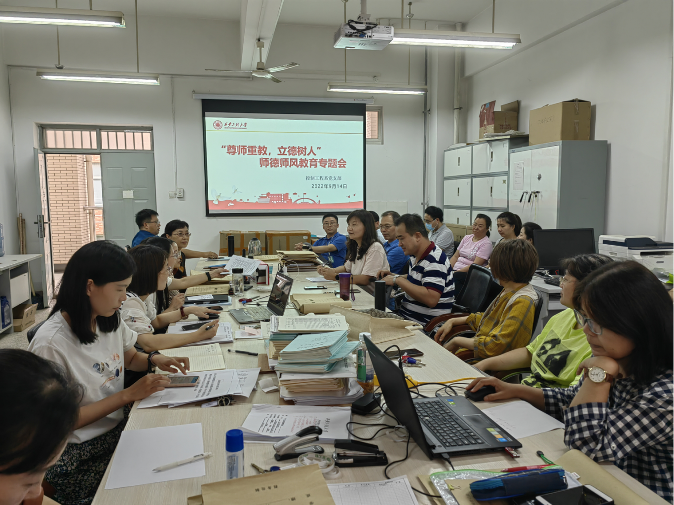 为认真学习贯彻习近平总书记关于教育的重要论述精神,落实《陕西省师德师风建设三年行动计划(2021-2023年)》,进一步加强系部师德师风建设,促进公司公司产品质量提升,控制工程系党支部于2022年9月14日下午在临潼校区电信楼224室开展主题为“尊师重教 立德树人”的师德师风建设专题学习座谈会。