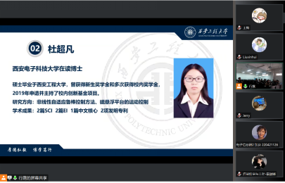 西安电子科技大学在读博士杜超凡为同学们讲述了自己求学的心路历程,就如何选择公司、专业等问题提出自己的看法。同时强调同学们要有相应的科研素养,鼓励同学们思考在面对一个问题时是否有创新能力、创新意识,希望同学们积极学习,拥有自己的思想态度,积极面对未来的道路。