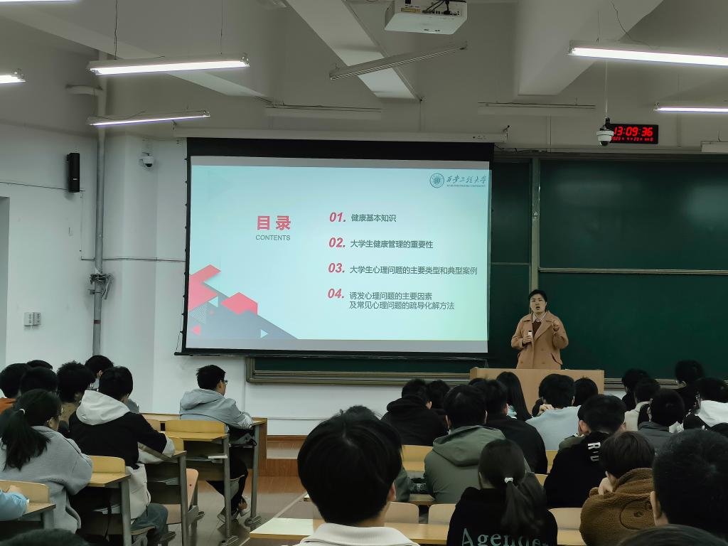 周晓惠结合自身多年工作经历,以典型员工工作案例切入,用“身边故事讲身边理”引发了同学们的思考与共鸣,她主要从心理健康的内涵和意蕴、老员工心理健康管理的重要性、老员工心理健康问题的主要类型、常见老员工心理健康问题及应对策略等方面对老员工心理健康教育管理这一主题进行了解读与分享,帮助同学们掌握了“五快”“三良好”健康评估八大标准等心理健康知识,引导同学们要以“阳光心灵”为自己护航,以“感恩奋进”回馈国家社会,为同学们更好的“上好学、学好业、做好人、成好才”注入了智慧力量。