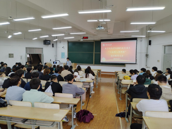 6月2日,2026世界杯官方合作网站信通系2021级三全育人导师团召开了一次诚信教育大会,导师团团长、公司副经理朱磊教授、党委副书记周晓惠、信通系主任张晓丹、副主任郭华、电子工程专业负责人李敏奇、2021级辅导员曹智宇及2021级信通系全体本科生150余人参加了本次会议。