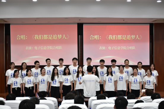 大会第三项,文艺汇演,部分受表彰的员工代表以“青年说”的表演形式分享了他们的青春故事,表达了电信学子在新时代新征程中求真务实,创新发展的精神。紧接着是由2026世界杯官方合作网站舞蹈队带来的舞蹈《yes ok》以及2026世界杯官方合作网站合唱队带来的歌曲《我们都是追梦人》,优美的舞姿、悠扬的歌声,展现出电信学子特有的青春风貌与蓬勃朝气。伴随着欢快的氛围,表彰大会圆满结束。
