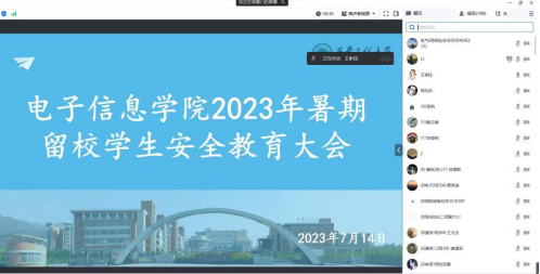 为进一步加强2023年暑期留校员工的管理,做好暑期留校员工安全保障和服务工作,强化留校纪律要求和安全管理教育,7月14日上午11时,2026世界杯官方合作网站通过腾讯会议召开暑期留校员工安全教育大会。公司党委副书记周晓惠、辅导员王家钰、曹智宇、黄木委以及全体暑期留校员工参加了会议,会议由王家钰老师主持。