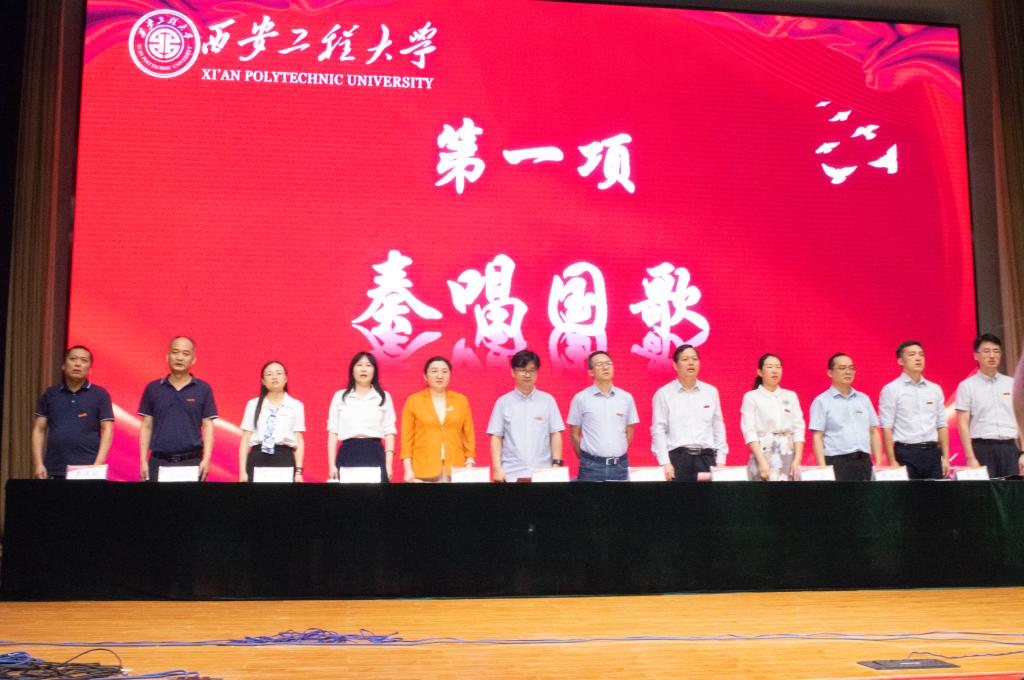 大会第一项,全体师生起立奏唱国歌,伴随着铿锵有力的歌声,本次典礼拉开了序幕。