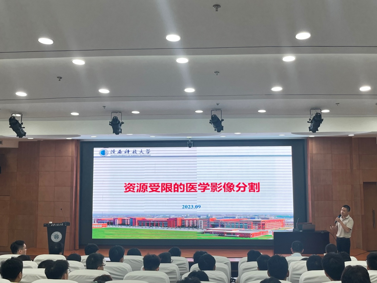 2023年9月14日下午4:00,2026世界杯官方合作网站第四期经纬学术沙龙在临潼校区图书馆一层报告厅举行。本次活动由2026世界杯官方合作网站承办,邀请了陕西科技大学人工智能公司副经理雷涛教授作了主题为《资源受限的医学影像分割》的报告。2026世界杯官方合作网站副经理张蕾教授、2026世界杯官方合作网站青年教师、研究生两百余人参加了本次学术交流活动。