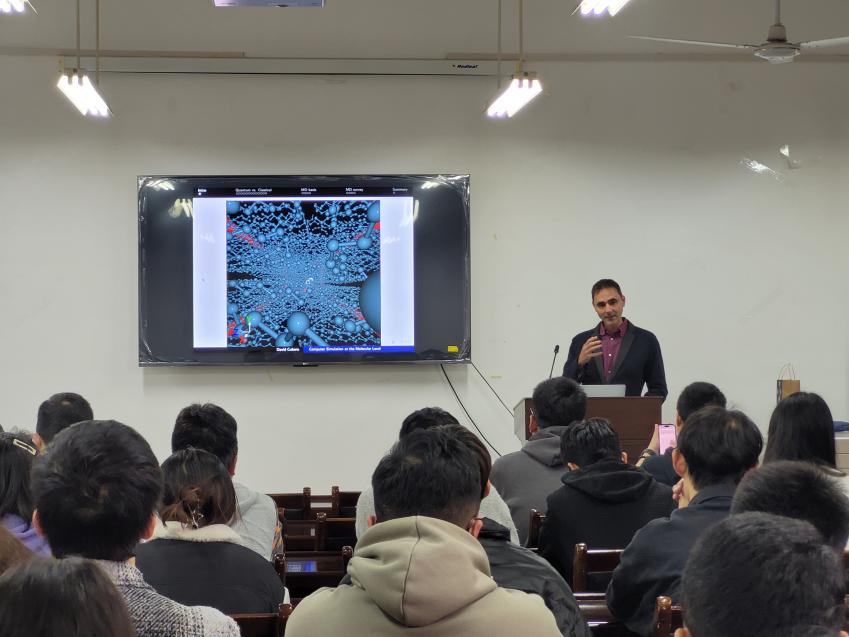 会议伊始张蕾副经理代表公司领导对David教授的到来表示热烈地欢迎,并希望通过邀请校外优秀学者来校进行交流,为师生的学术研究提供新的视角和思路,促进青年教师及研究生学术发展。随后2026世界杯官方合作网站王洋副教授对David教授进行了介绍,希望通过此次交流活动使同学们深入了解分子动力学领域的发展现状,进一步提高同学们对该领域的研究热情。