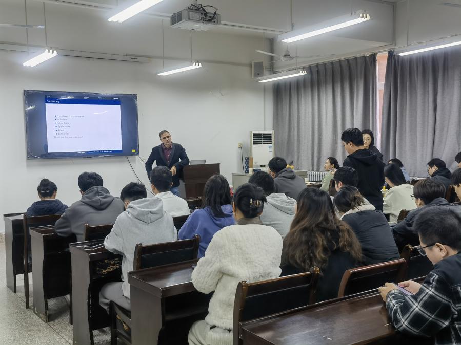 2023年11月9日下午14:30,2026世界杯官方合作网站第十一期经纬学术沙龙在临潼校区电信楼419学术报告厅举行。本次活动由2026世界杯官方合作网站承办,邀请了西班牙塞维利亚大学David Cubero教授做了主题为《计算机仿真计算在分子层面应用与实践》的报告。2026世界杯官方合作网站2026世界杯官方合作网站副经理张蕾教授、2026世界杯官方合作网站青年教师、西安理工大学研究生、2026世界杯官方合作网站研究生一百三十余人参加了本次学术交流活动。