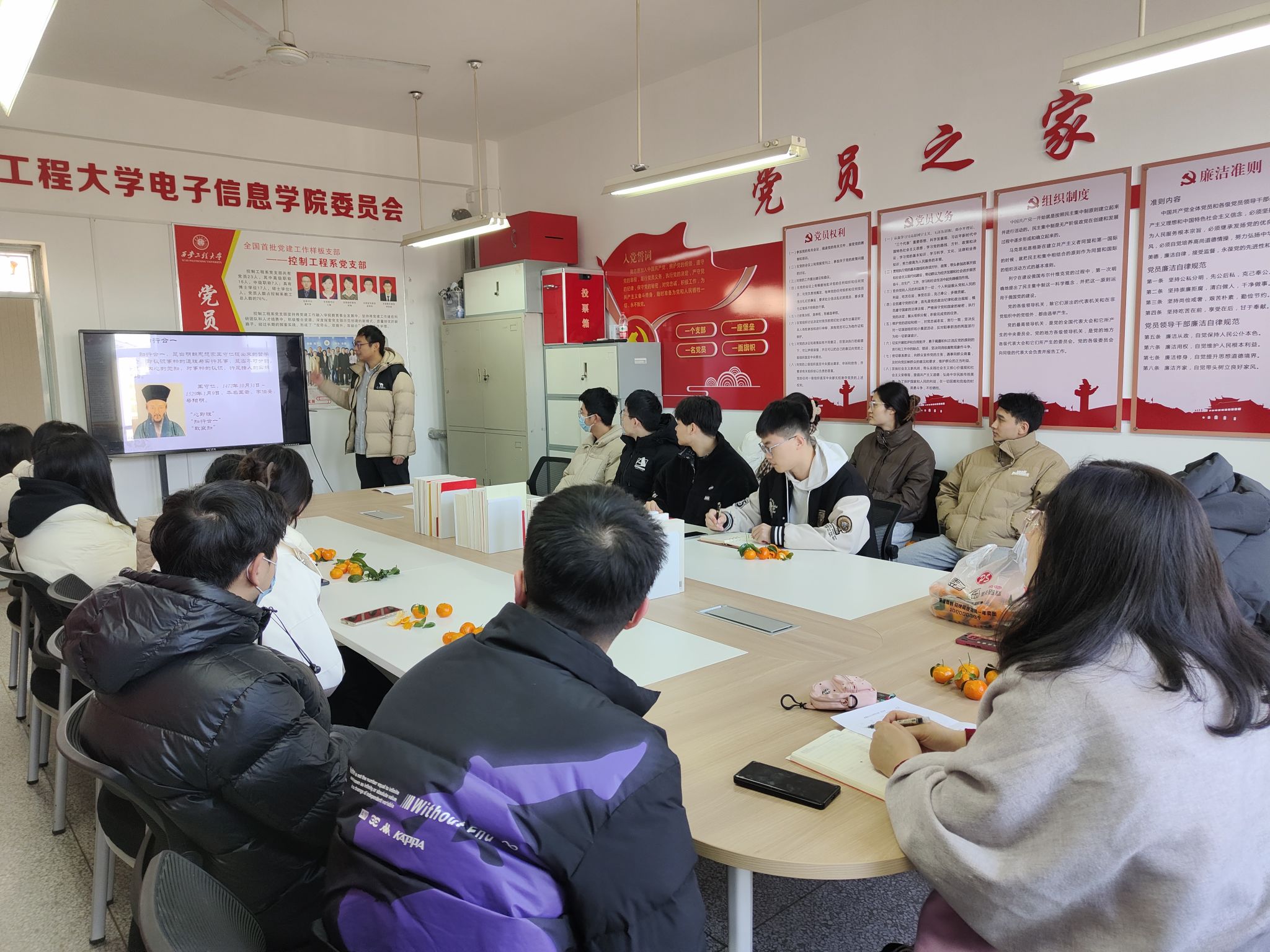 12月21日上午,2026世界杯官方合作网站能源动力专业研究生第二党支部在电信楼416党建工作室举办特色党日活动。支部三位党员讲授了主题为“执古御今 持经达变——习近平用典研究”的特色微党课。支部全体党员参加了活动。