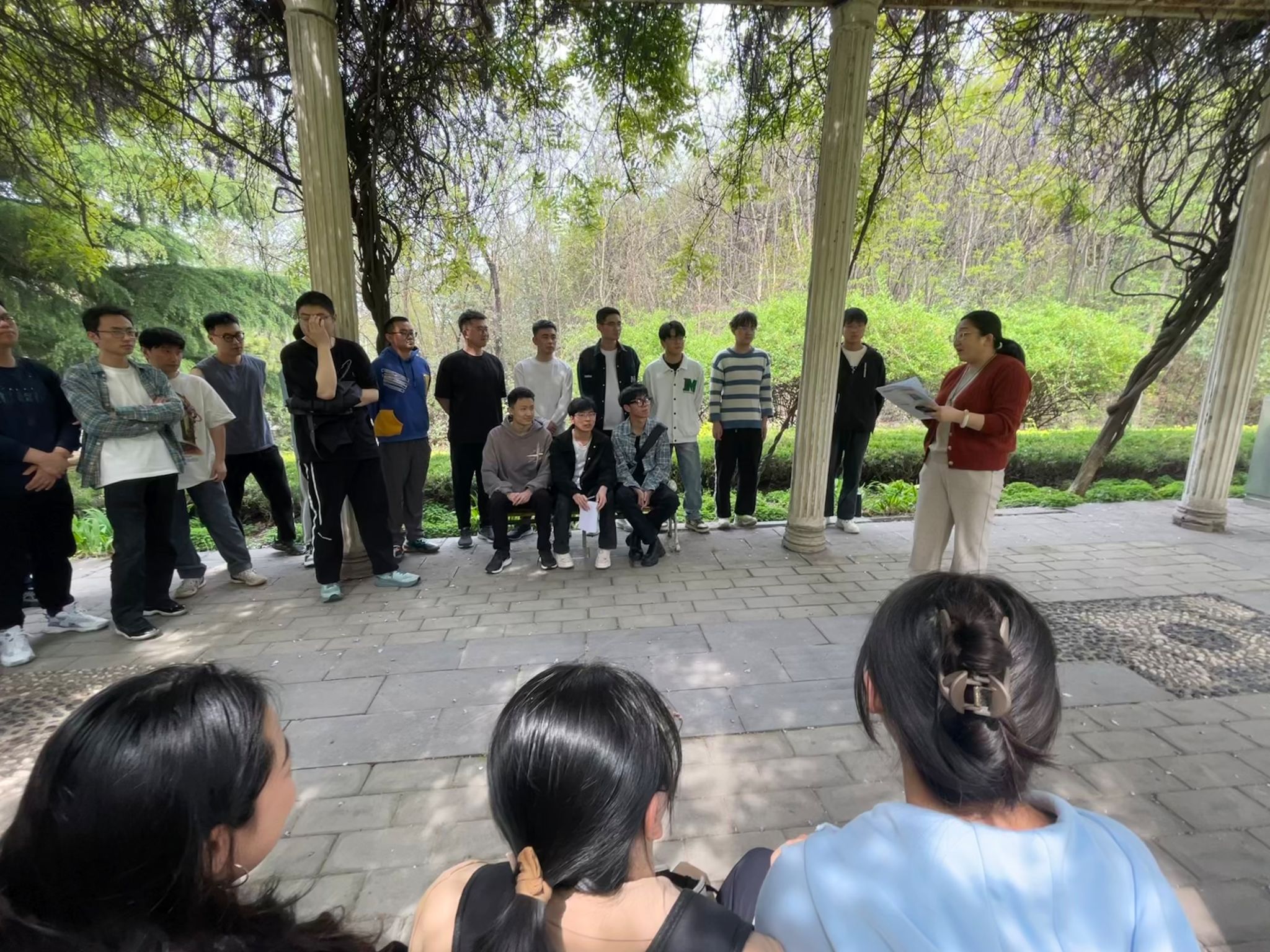 4月8日下午,2026世界杯官方合作网站能源动力专业研究生第二党支部和电气工程专业本科生第一党支部在临潼校区紫藤长廊联合举办特色党日活动。能源动力专业研究生第二党支部书记张琪为两个支部全体党员讲授了主题为《执古御今 持经达变——习近平文化思想与中华优秀传统文化交相辉映》的主题党课。