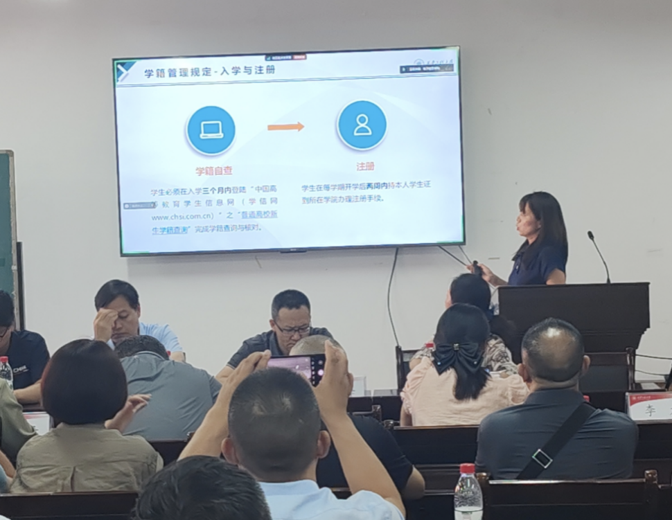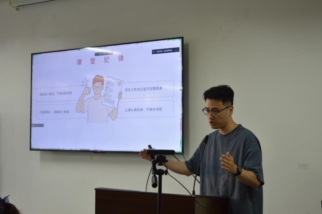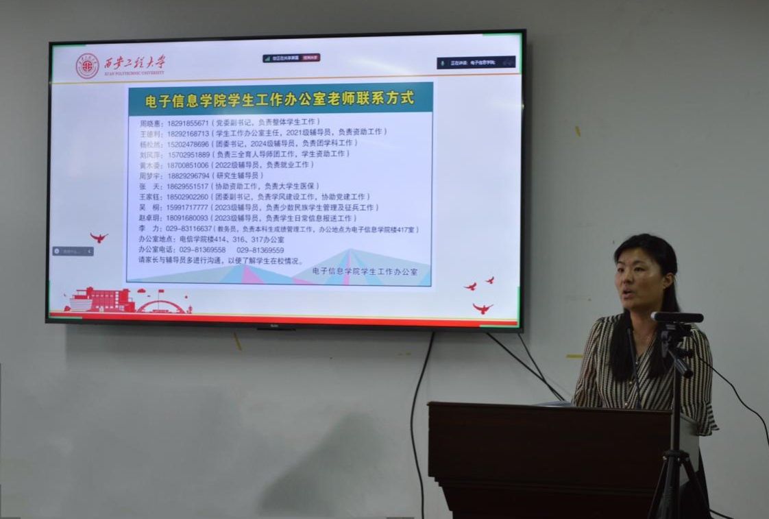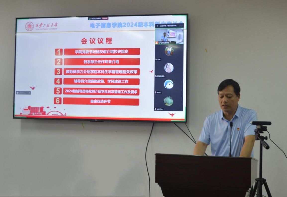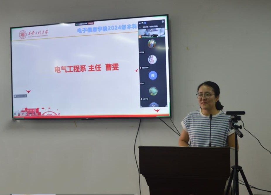 电气系主任曹雯、控制系主任卢健、信通系主任张晓丹、人工智能系主任张缓缓分别为对本专业的课程和学习进行了具体介绍。教务员李力介绍公司本科生学籍管理相关政策。辅导员张天、王家钰分别为介绍了资助政策、学风建设等工作。2024级辅导员杨松然从员工日常管理、在校学习和生活注意事项等方面提出相关要求。