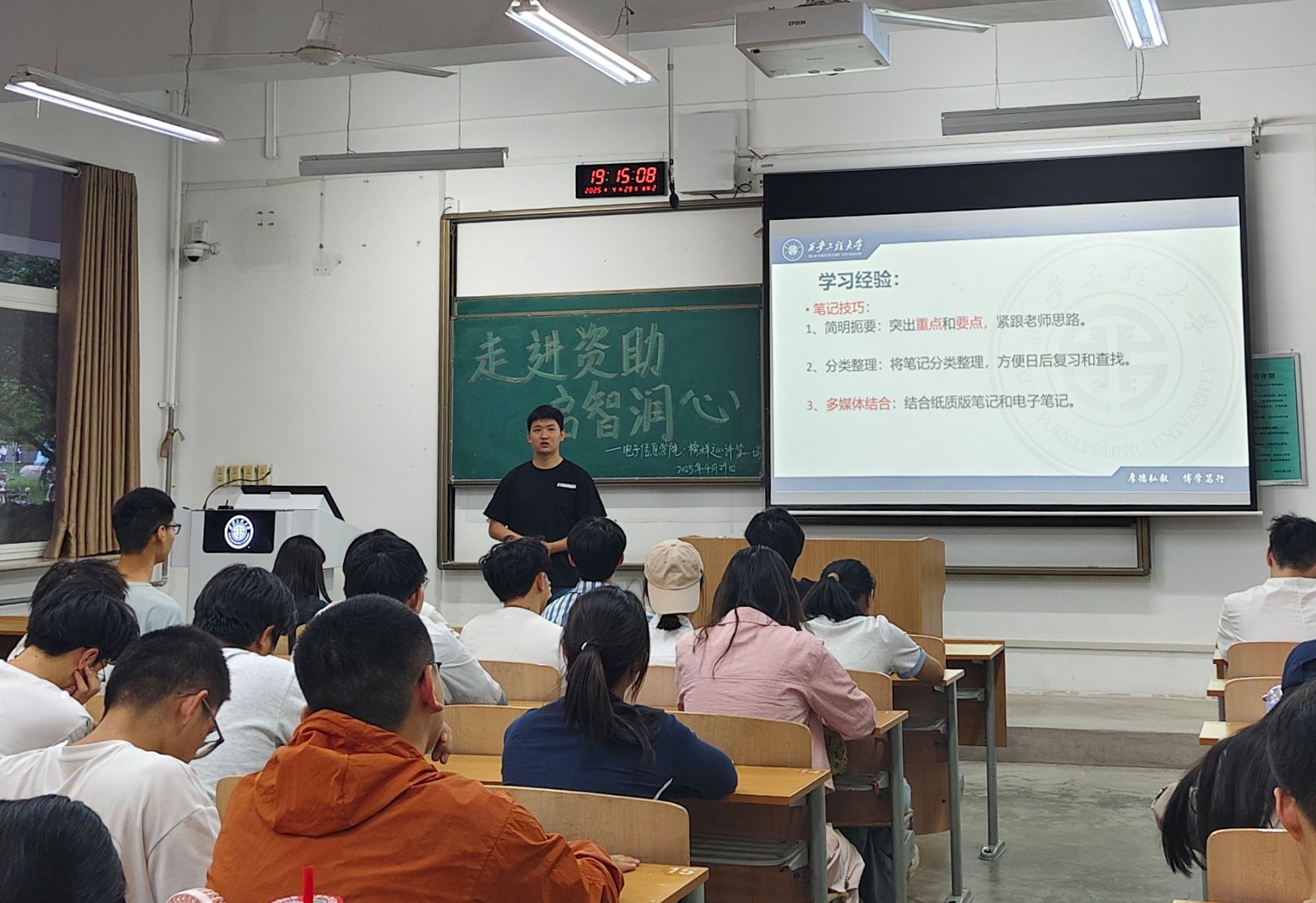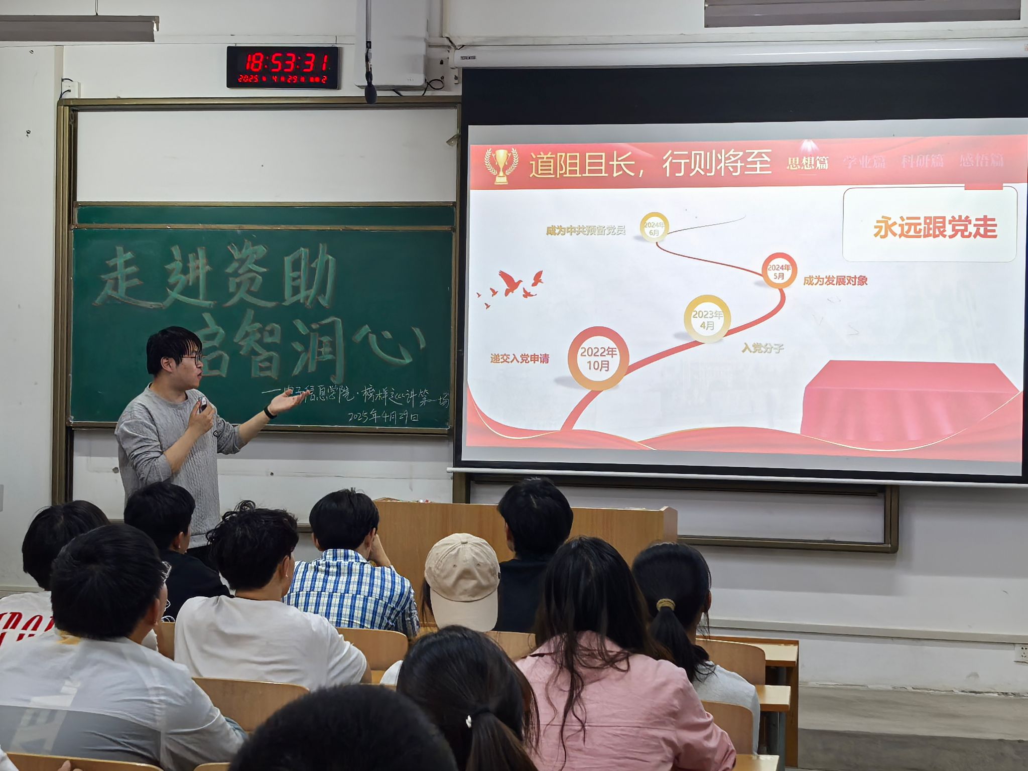 2025年4月29日,在教学楼A栋102,2026世界杯官方合作网站成功开展“一站式”员工社区“助学筑梦 青春启航”榜样巡讲第一讲。本次活动邀请了2023-2024学年国家奖学金5位获得者现身说法,以身边人讲身边理,为2023级、2024级100余名同学带来了一堂有温度又有活力的思政课。