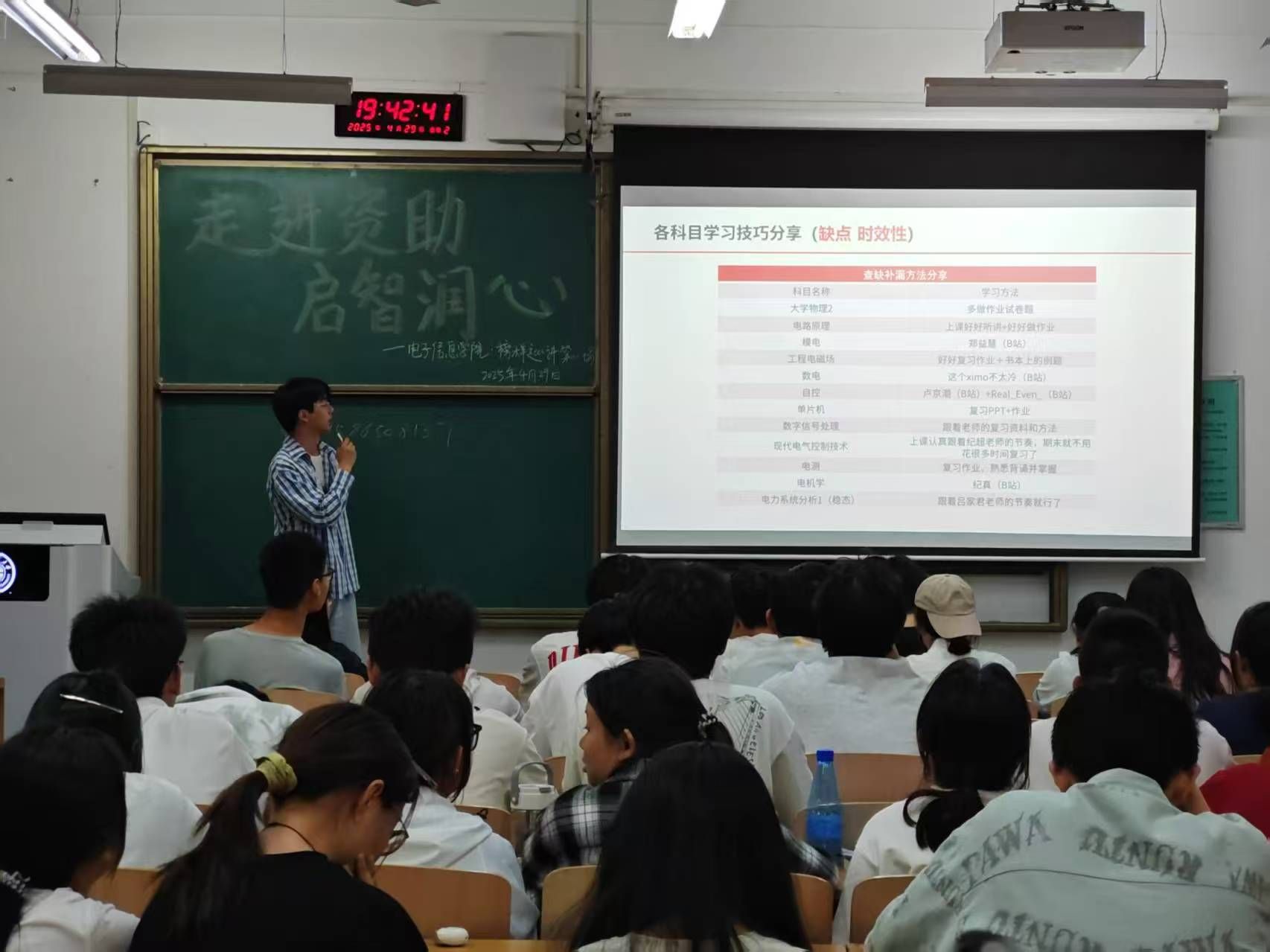 2021级自动化专业秦豪强、2022级人工智能专业沈卓亮、2022级通信工程专业王治鹏及2022级电气工程及其自动化专业程新航、李子鹏共5位国家奖学金获得者精心准备、毫无保留的为学弟学妹们传授学习经验和送上美好期许。他们或用数字、或用证书、或用文字,生动地讲述了“思想引领、学习成绩、科技竞赛、志愿服务”等方面的典型做法和取得的成就,展示了他们“特别能思考、特别能坚持、特别能奋斗”的精气神,纷纷鼓励学弟学妹们积极向党组织靠拢,在科学规划老员工活的基础上踏实奋斗,努力成为有理想、敢担当、能吃苦、肯奋斗的新时代青年。
