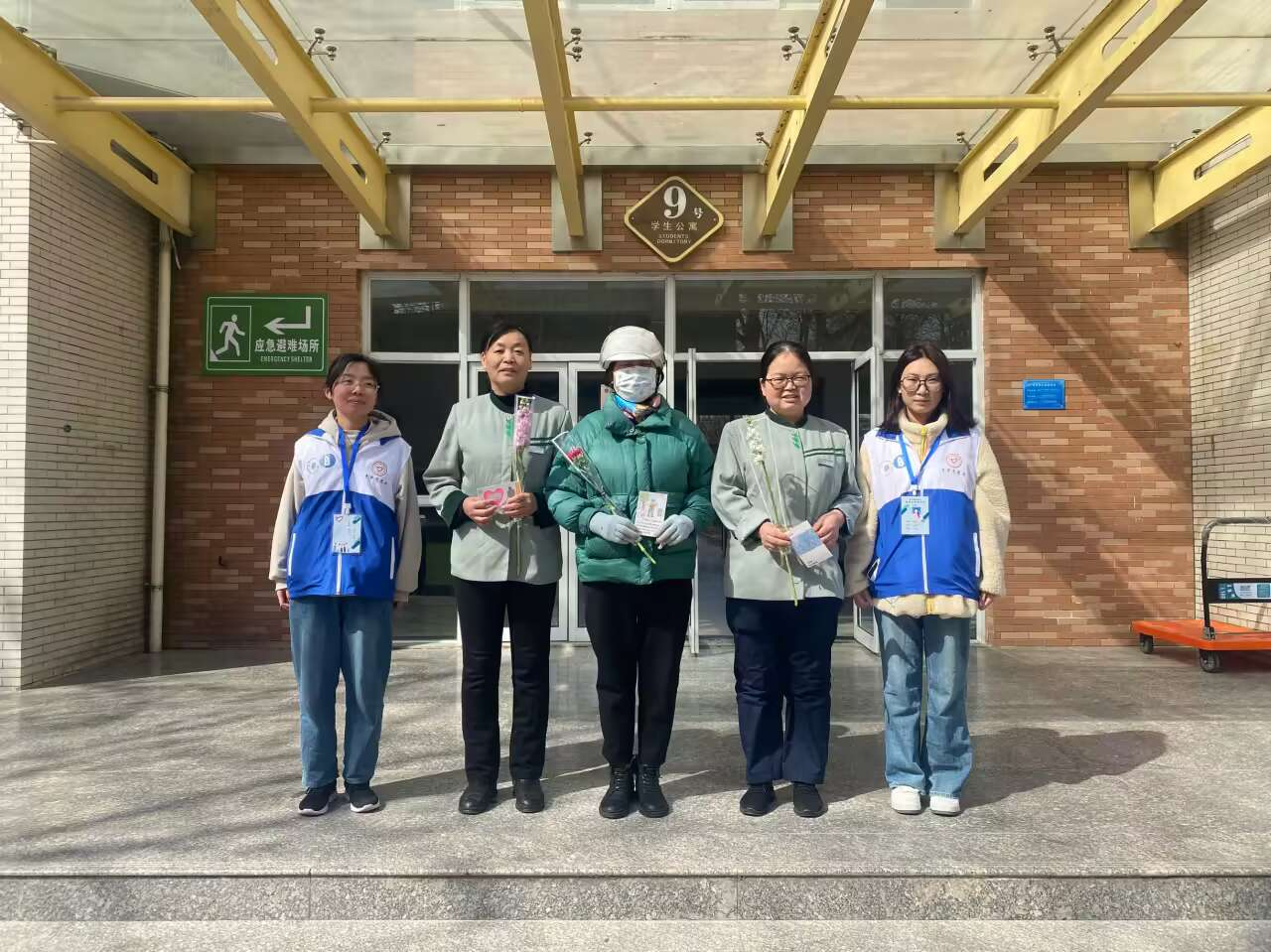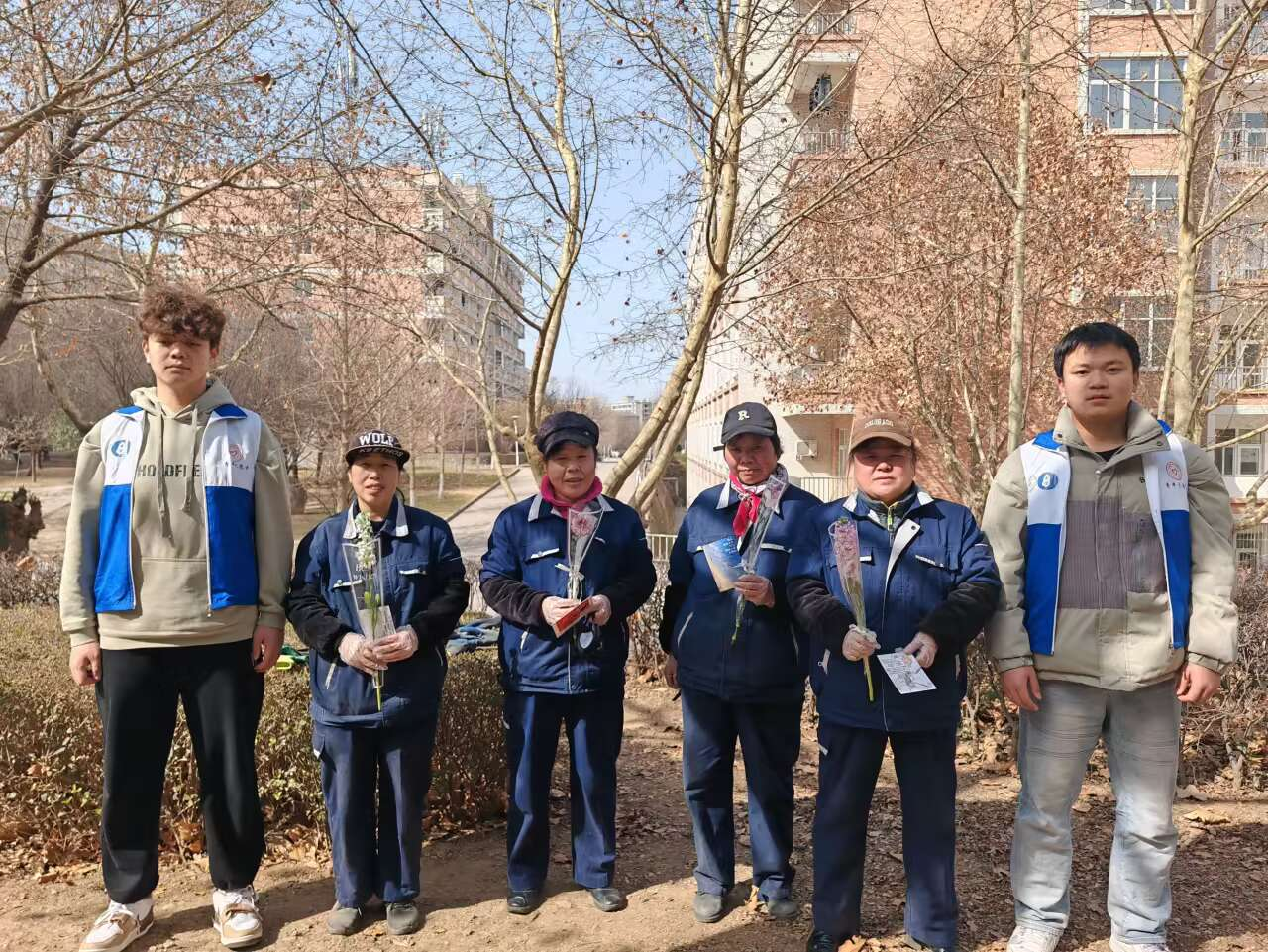 活动开始之后,负责人将志愿者们分成几组分别去寻找环卫工阿姨的踪迹。在这个特别的节日中,环卫工阿姨们仍然在校园一角尽责地打扫校园卫生环境。在找到环卫工阿姨之后,志愿者们将自己准备好的明信片和慰问礼物发放给了环卫工阿姨们,表达了对环卫工阿姨工作的敬意并对阿姨们送出“三八”妇女节节日祝福。环卫工阿姨收到礼物后脸上浮现出笑容,因为这不仅是“三八”妇女节节日祝福,更是员工们对环卫阿姨们工作的赞誉。最后,环卫工阿姨们与志愿者合影留念。