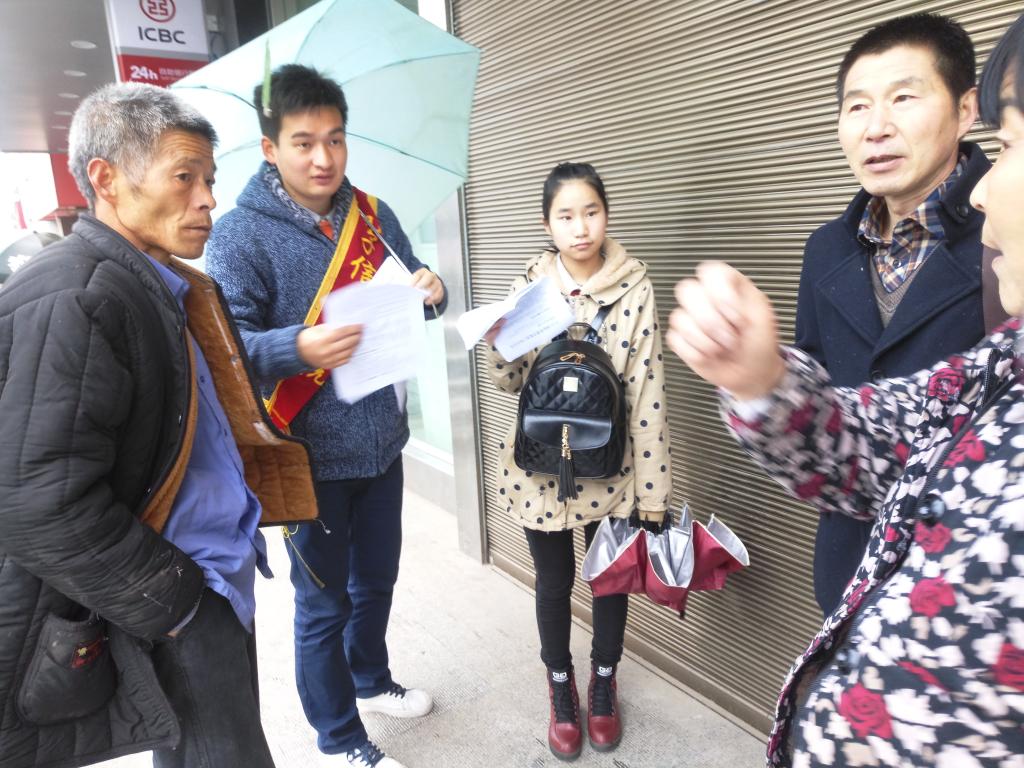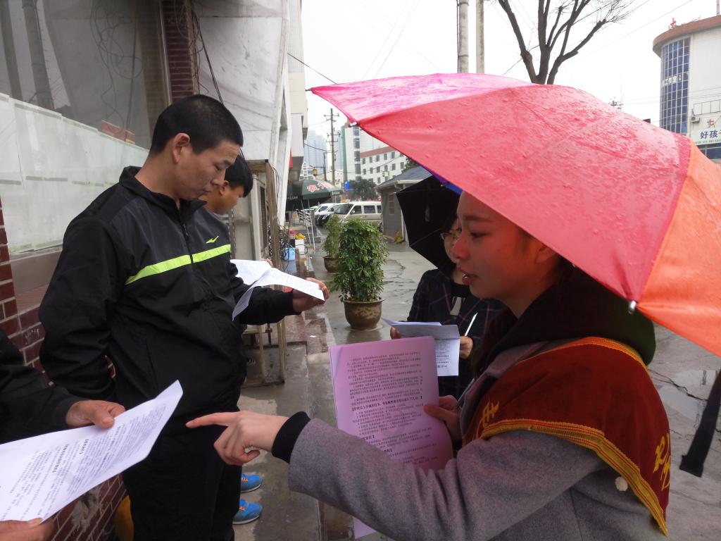 在东三岔同学们趁着中午人员流动量较大的时候进行宣传活动,经过短暂的讨论与分工,我们分成了若干小组向过往的路人分发印有消费者维权知识的传单。此外,为了让临潼居民更好地了解正确的维权方式,同学们进行了细心的讲解。虽然下着雨,但丝毫没有打消大家的热情。通过宣传,进一步提高了辖区居民群众的消费权益保护意识,增强了鉴别真伪的能力,也提高了消费者们抵制和远离“假冒伪劣”商品的意识,让居民们对生产生活中的维权知识增进了解。