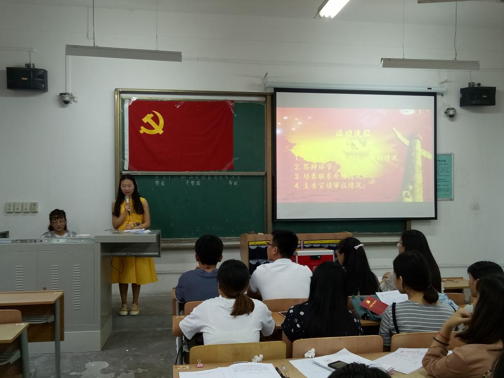会议第一项,进行预备党员接受大会。首先,惠史科同志就评选流程做了简单介绍。接着,席南南、高晨、肖博闻等9名发展对象依次从思想、工作、学习、生活等方面向党组织介绍个人情况、表明决心,并认真回答了支部党员提出的问题,各入党介绍人说明了申请人的有关情况,表明了自己的意见。最后,通过正式党员无记名投票,综合一年的考察情况,经支部党员大会决议,同意席南南、高晨、肖博闻等9名同志成为预备党员。